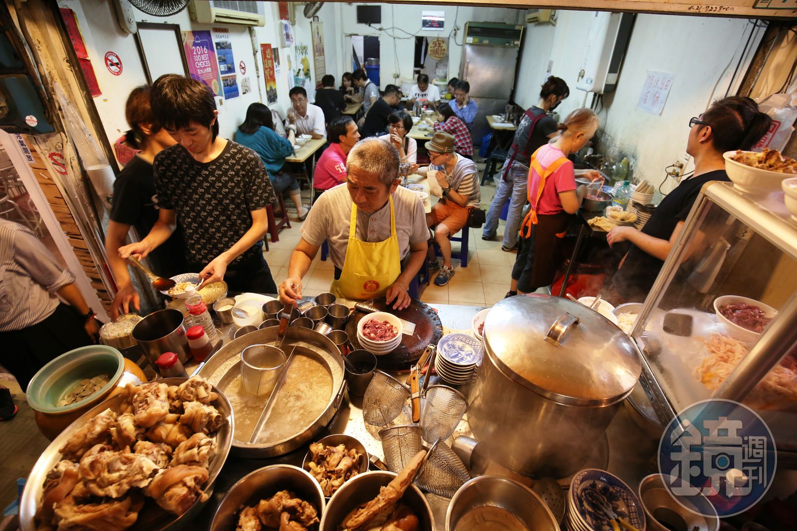大家都知道阿明傍晚5點才開業,但攤子前卻從4點就有排隊人潮甘願一邊盯著還在滾著豬腳的高湯,一邊等著可以入座。