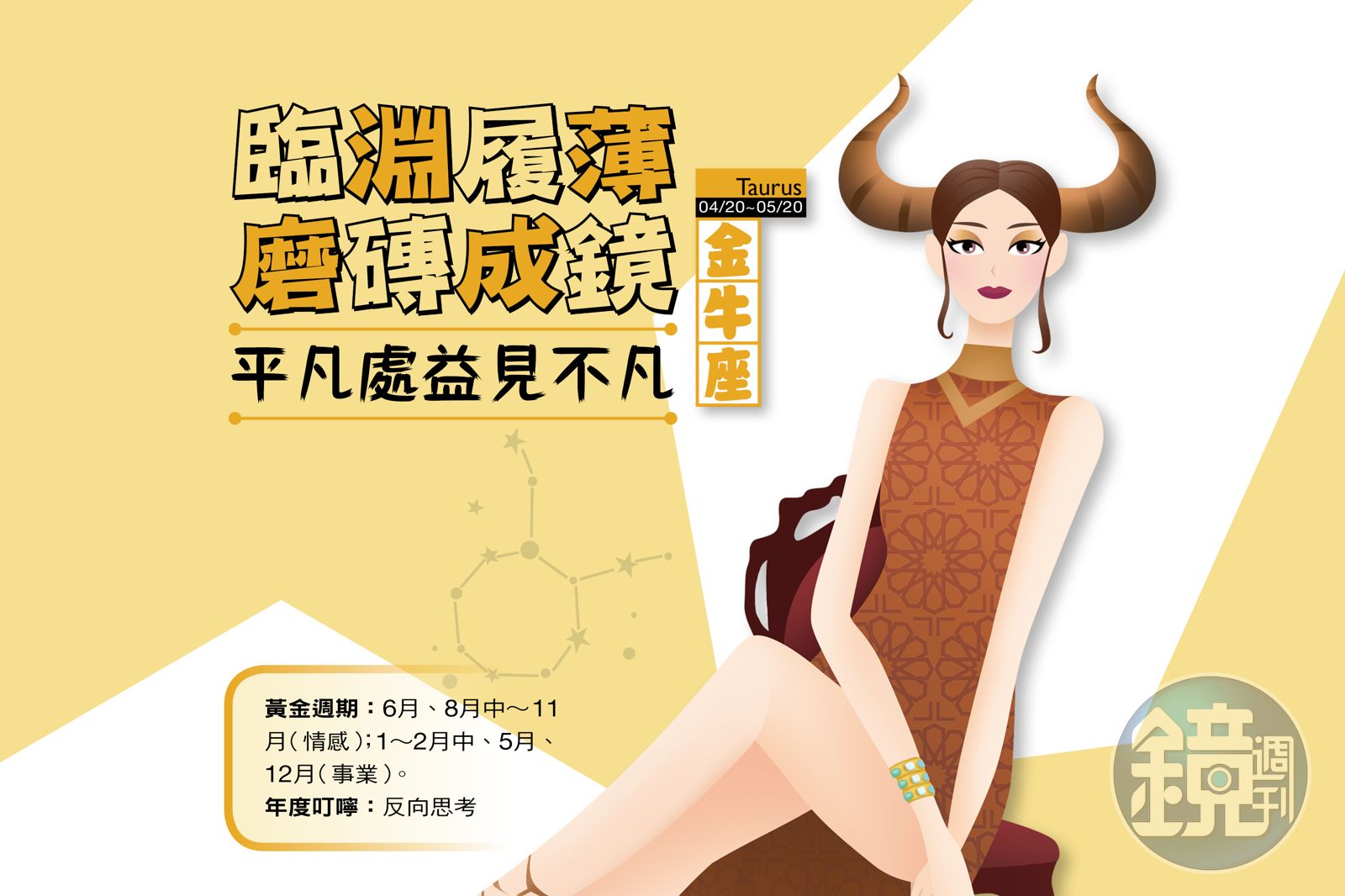 牛座今年情感如春泥護花,但求盡心不問回報。愛得呵護備至、健康自然,但卻也毫不起眼,平凡平淡得缺乏說服力。一不小心就會拿到「好人卡」,成為別人故事裡的大仁哥或女配角。3月初到4月中守護星退行期提防情感變質或陣亡。10月幸福磁場轉強,愛情換季轉入明媚春天,步入結婚狂潮年。
