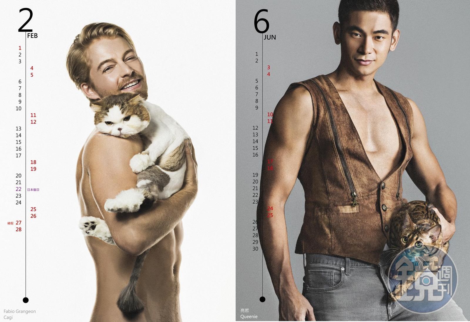 由紅牌文創發起製作的「男人與貓」公益年曆,收入所得將會捐給「台北市流浪貓保護協會」,找來12位各行各業身材健壯的帥哥入鏡,來台發展數年的法比歐,雖然自己沒有養貓,但前年收養了一隻同事在路上撿到全身皮膚病的雪納瑞,取名Luna,熱愛大自然的他,最愛帶著愛犬上山下海到處玩,因為覺得狗自己在家很孤單,所以希望Luna能跟他一起上班、上通告,愛犬也陪著他在台灣生活,是法比歐的貼心另一半。