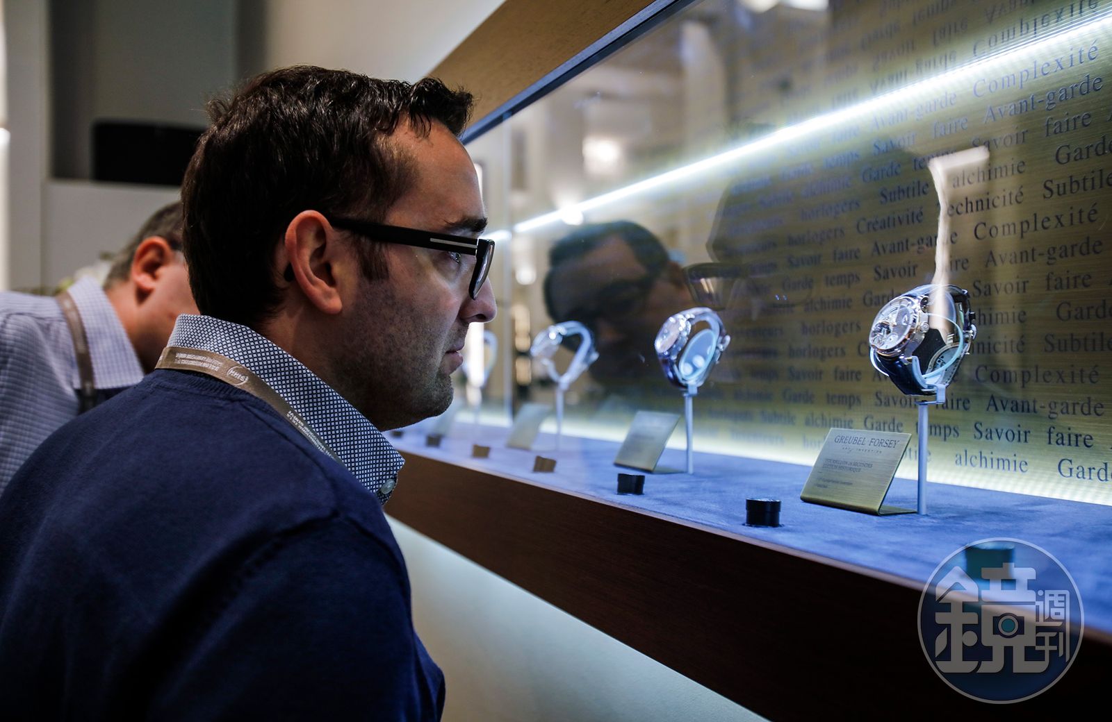 為什麼大家都想看GREUBEL FORSEY(以下開始簡稱GF)的大自鳴腕錶?首先,它是GF,光這個品牌就一定要看了;再來,它是GF首款大自鳴腕錶,大自鳴功能是手錶中的「聖杯」,想當然爾,價格當然不斐。在今年SIHH場內,撇開特別訂製款或珠寶錶不算,GF這款大自鳴腕錶應該是單價最高的新錶,參考定價是NT$42,000,000,對,4,200萬(我知道你還在算幾個零)。