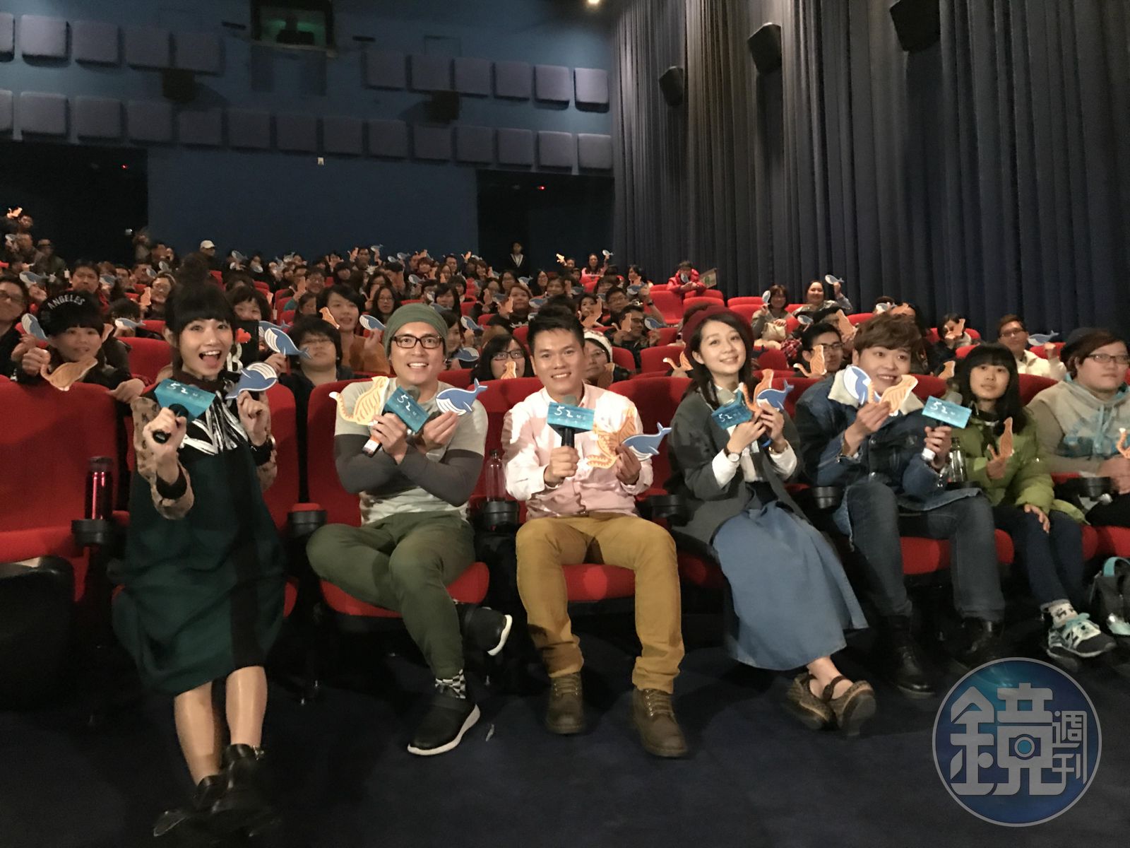 不過最投入的人,應該是舒米恩,因為他不僅是帶頭演唱歌曲,還拿著麥克風不斷插嘴、即興發揮旁白,形成「台下舒米恩吐槽銀幕上舒米恩」的有趣現象,他說這樣算是另外一種心情的抒發。舒米恩大力推薦「K歌場」,觀眾愛怎麼玩都沒關係,還很得意地說:「我剛剛跟張榕榕對唱!」笑翻眾人。