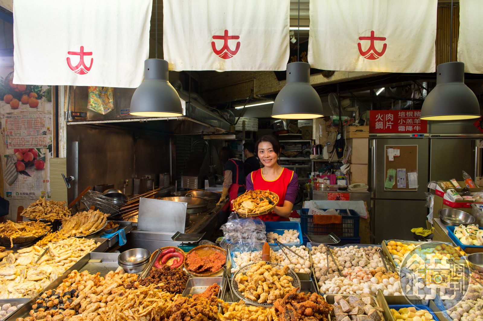 第一站是「大豐魚丸」,雖是魚丸店,但更誘人的是前台堆成山的金黃炸物,紅燒鰻、排骨酥、雞捲,甜不辣,全都自製,新鮮現炸。「他們家的炸牛蒡尤其好吃,每次買完回家都只剩半包。」