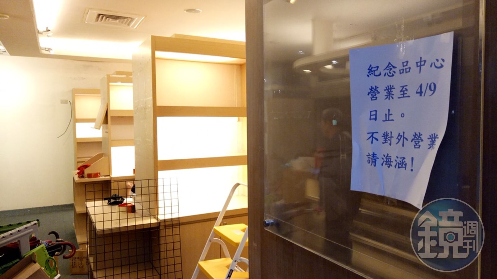 本刊記者今前往位於國父紀念館西入口「中山畫廊」側的紀念品中心,只見門口張貼「紀念品中心營業至4月9日止。不對外營業,請海涵!」告示,內部商品都已下架,僅有兩位工作人員在清理內部貨品,而紀念品中心外,僅剩1台文創商品販賣機販售相關紀念品。