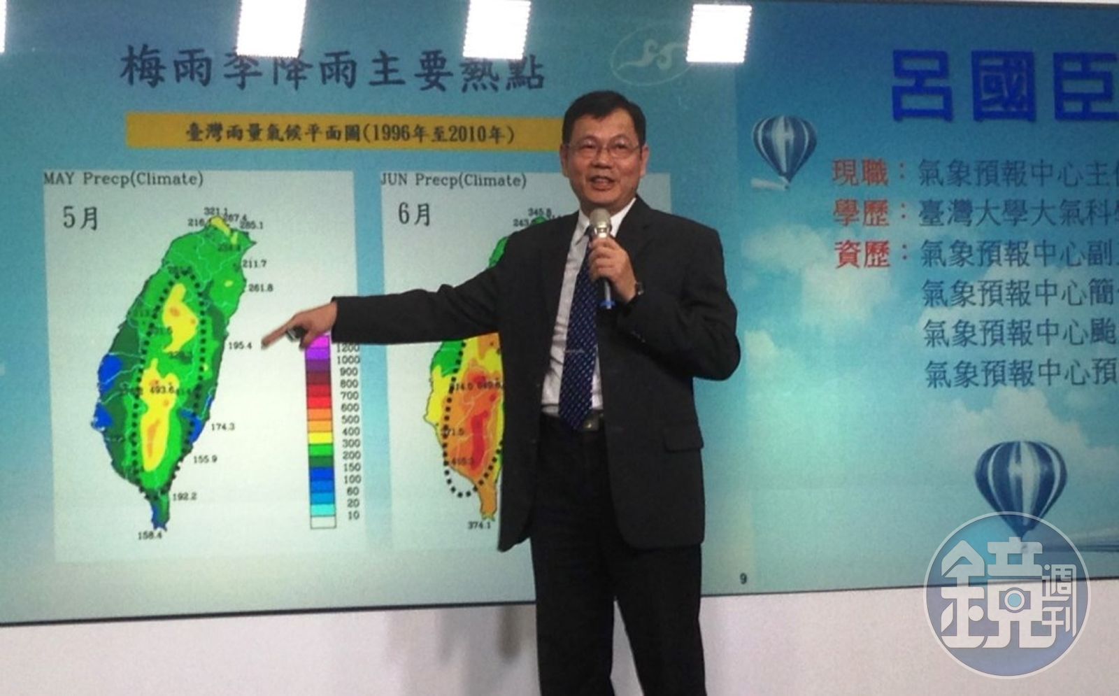 呂國臣進一步指出,從過去的歷年記錄來看,北部的梅雨會在五月上旬出現,中南部則是集中在五月中下旬,但因為這幾年的暖化和極端氣候,近年的梅雨有越來越集中的趨勢,而總雨量仍與平均值差不多,顯示豪大雨機率也比過去還要高。