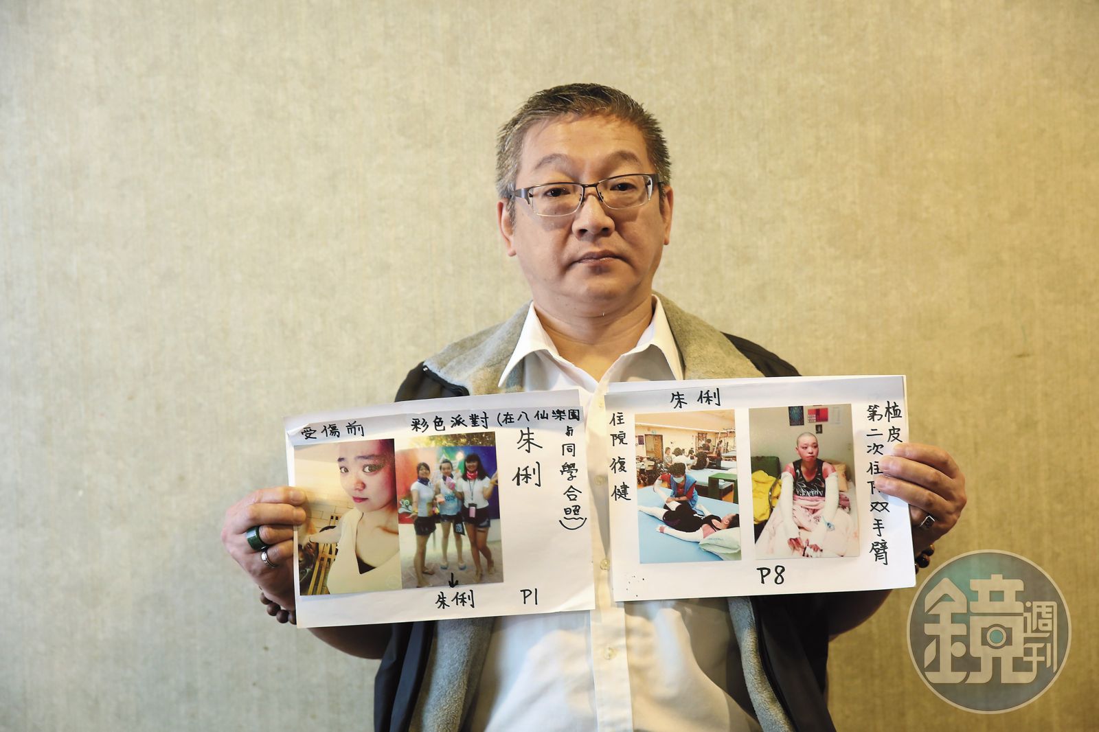 朱俐爸爸說:「家裡一定要有個人照顧,就得辭職。很多人都有創傷後症候群,我們一些家長有群組,裡面看心理醫生的很多呢。」聽他說,會覺得那在傷者身上增生和臠縮的疤,其實也在家屬的心上發生。