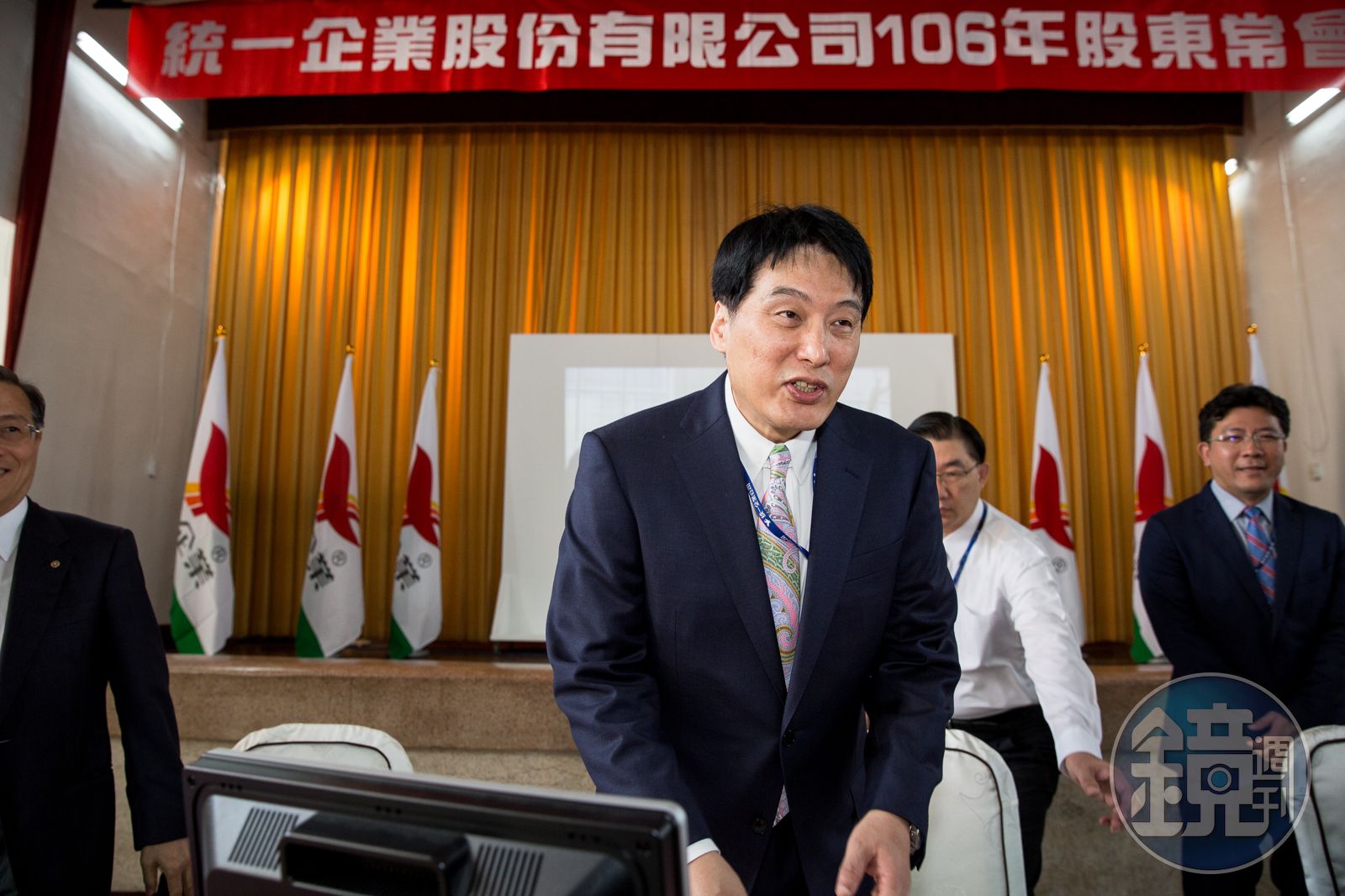 深藍色西裝搭上彩色花紋領帶,統一企業董事長羅智先21日神情一派輕鬆,出席自家公司股東會,會議一開始他就開心表示:「在經營團隊努力之下,去年合併營收4,134億元、稅後純益145億元,較前一年度成長3%,均創下新的紀錄,希望今年能不斷成長!」