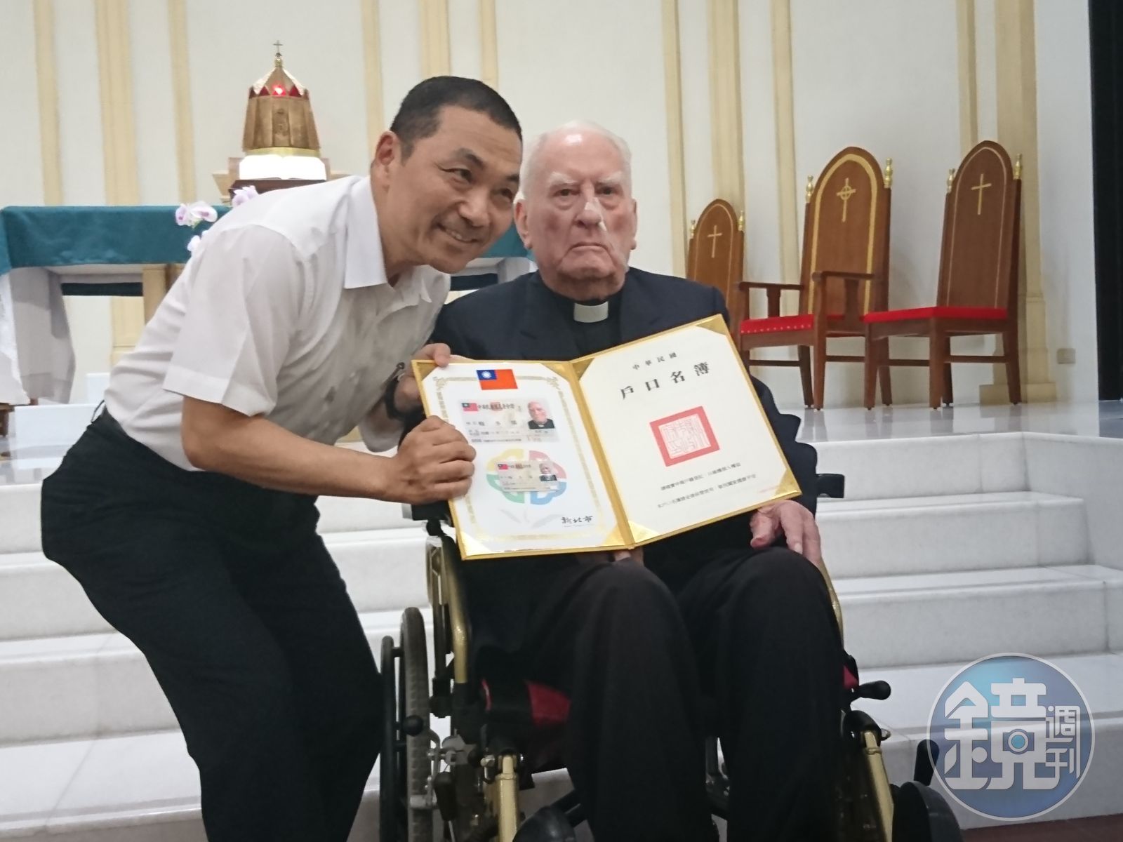 由於梅冬祺年事已高,近年選擇在新店聖母教堂休養,但他身體硬朗,仍想著為台灣盡一分心力,為感謝他對台灣的貢獻,侯友宜今日在新店聖母教堂頒給梅神父身分證和戶口名簿,成為新北市首位以特殊功勳取得身分證的外國人。