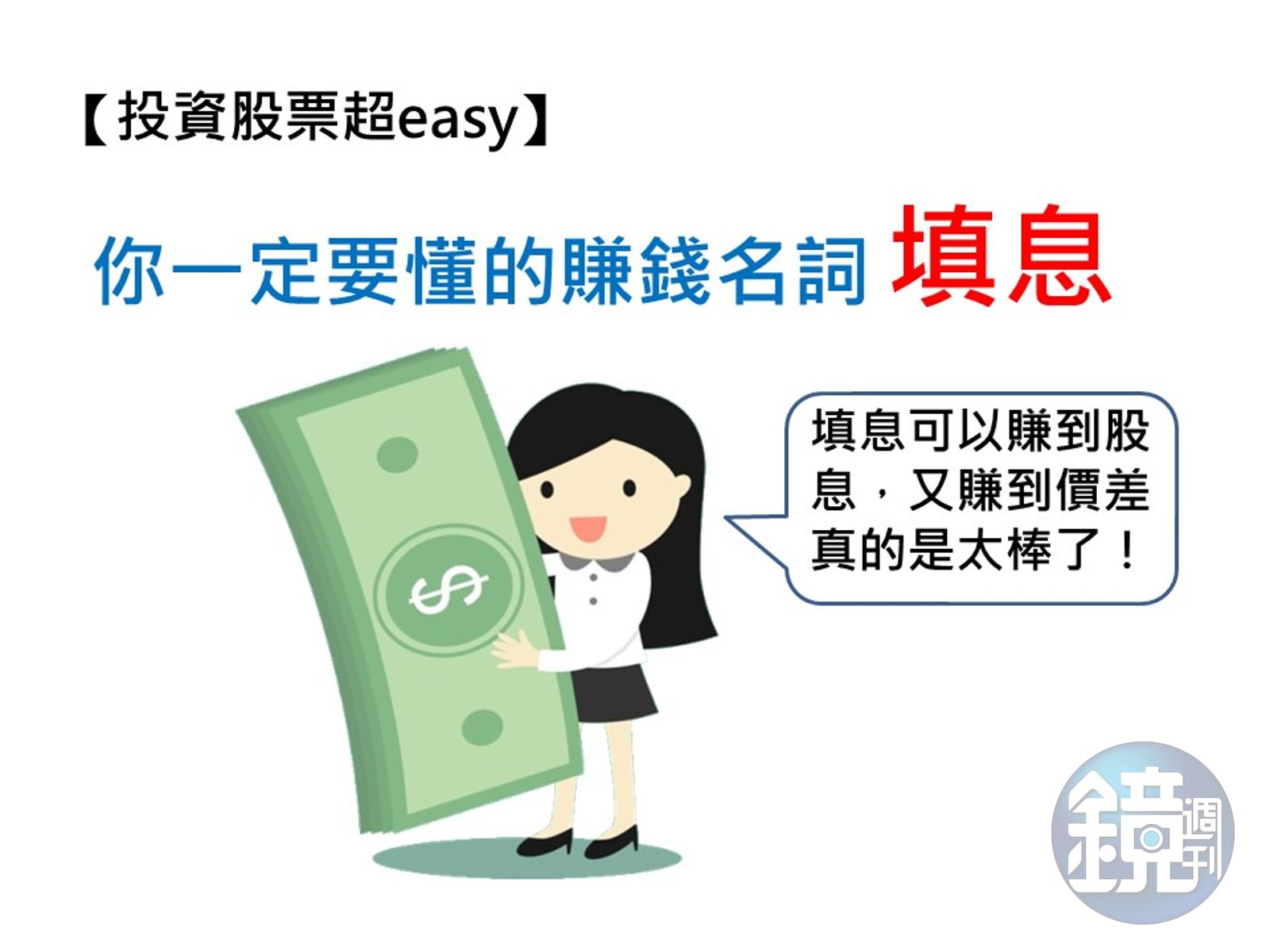 每到除息日,有人高興,也有人沮喪,因為股票除息後,若沒有填息,投資人雖賺到股息,卻有可能賠了價差,實際上財富並沒有增加。為什麼?因為股票在除息後,股價會下跌,亦即除息前一日的收盤價,與除息當天開盤價位之間,會留下一個「缺口」,此稱為除息缺口。而填息就是股價回升到除息前一天的收盤價。 一般而言,「填息成功率」高的企業,代表有越來越多投資人看好公司未來營運,願意加入股東行列,可視為公司營運前景展望佳的訊號,至於會填息的好公司,則通常具備3條件。哪3個?以下圖文告訴你!