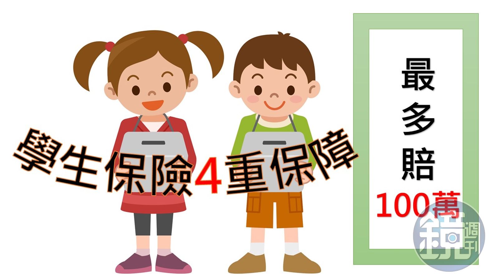 其實,學生保險提供了4大保障,包括身故、殘廢、疾病或傷害醫療、食物中毒等,保障範圍相當廣。