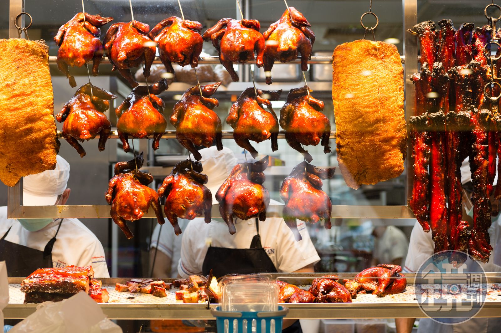 個子不高的陳翰銘像是廚房裡的巨人,他每個處理燒臘、煮雞的動作及指令,都讓在旁的師傅們引頸緊盯,眼神裡透露著希望能多學幾招的企盼。「了凡香港油雞飯‧麵 」來台灣開幕也不過3個月,廚房團隊裡有來自五星飯店的燒臘師傅及資深廚師,他們看著陳翰銘煮油雞的神情,好像是電影《星際大戰》裡,天行者路克對尤達大師的崇敬。