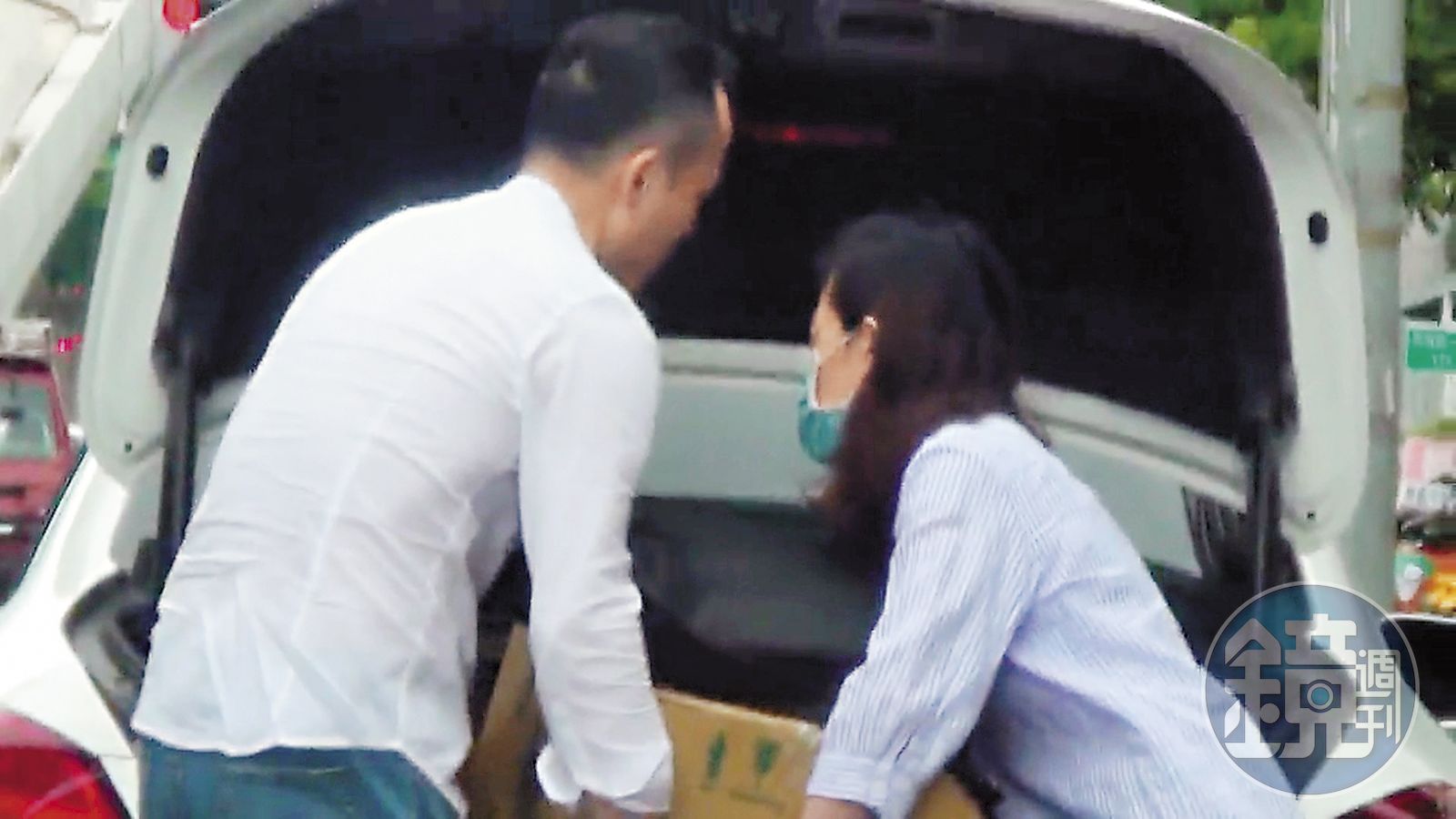 該名男子與黃敬琳都穿著淺色長袖襯衫,2人在車後方聊了近2分鐘,表情看來有些煩惱。交談完後,男子從黃的手中接下衣服,貼心折起,放在紙箱上,並用手指了一下黃敬琳的住家方向,示意黃先回家,這時黃才獨自搬著紙箱回到住處,男子則開車離去。