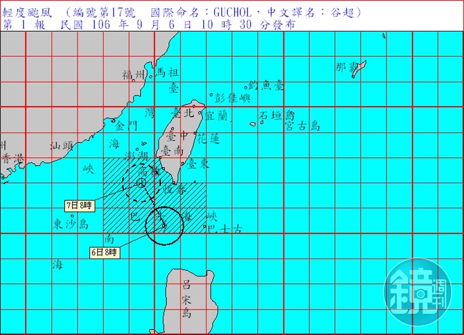 從今天晚上到明天將是谷超颱風最接近台灣的時候,預計明天下午就會登陸中國大陸,降雨的區域將會集中在恆春半島,明天則是會擴大至台灣南部,其餘地區則是維持晴朗炎熱的天氣。