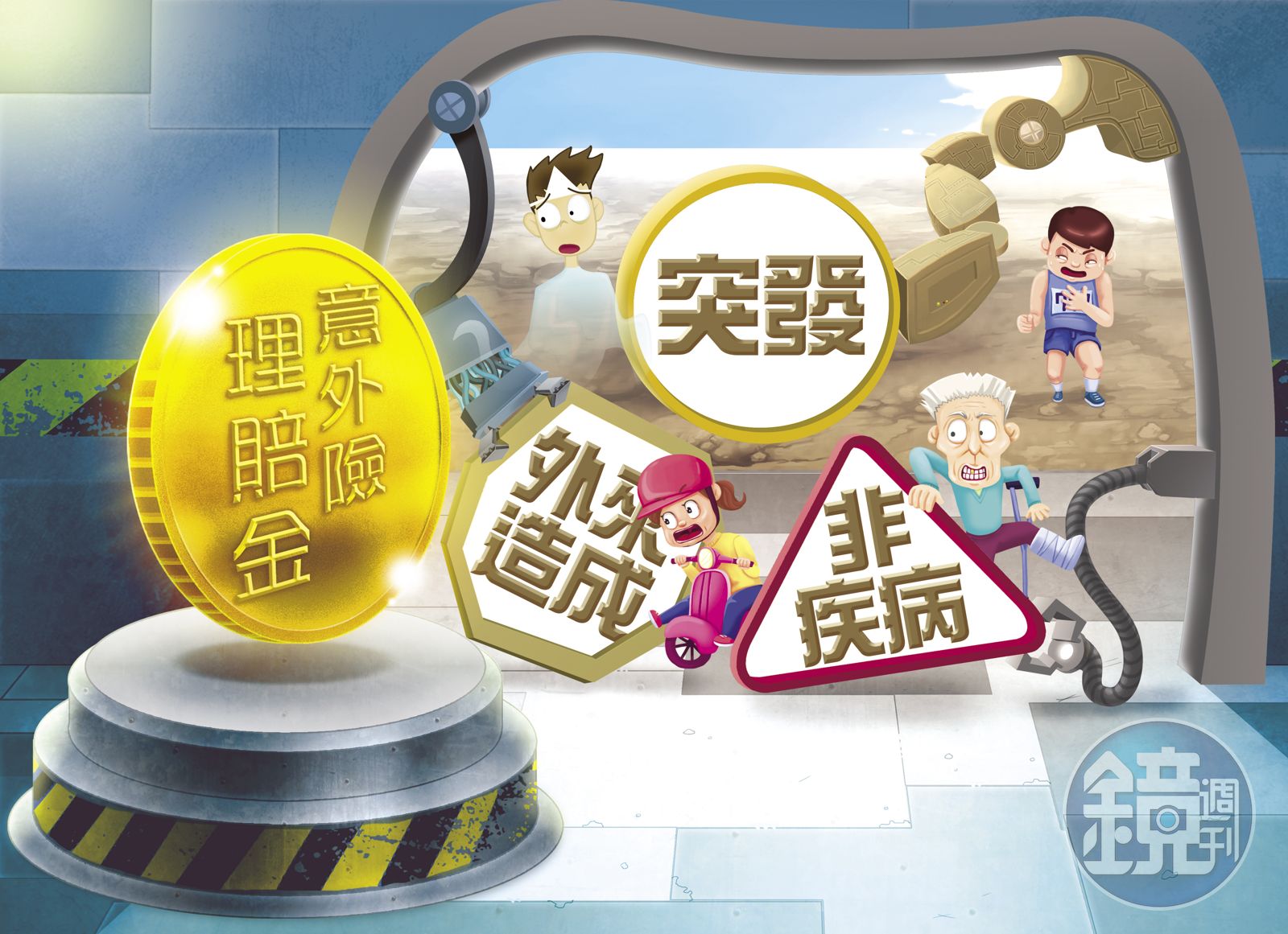 專精理賠與保險法令解析的壽險公會副祕書長金憶惠則解釋,所有糾紛得回歸意外險定義:必須符合突發、外來造成、非疾病等3要素,「因為意外險是保障『意外』造成的身故、殘廢與相關醫療理賠,因此只要是意外事件,都能申請理賠,但若因疾病或故意行為而導致,則不會理賠。」