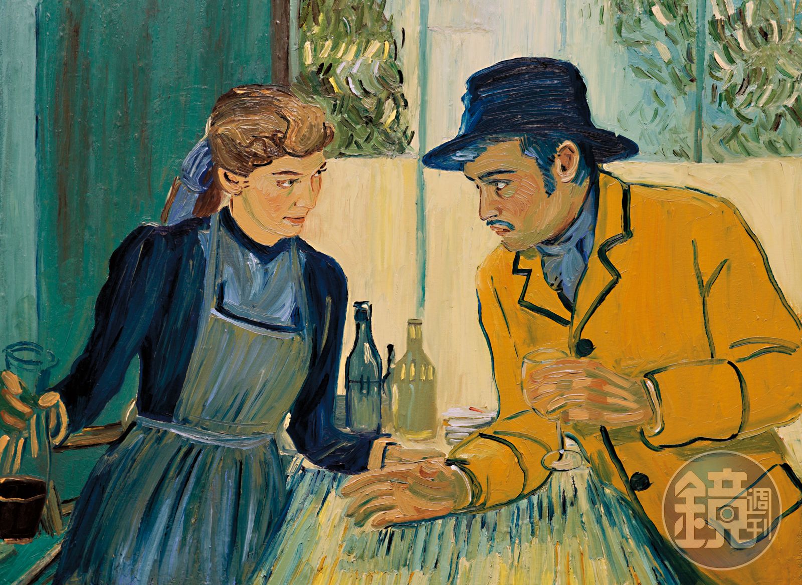 首先,自然是它的形式。波蘭的多蘿塔柯碧雅拉(Dorota Kobiela)和英國的休魏奇曼(Hugh Welchman)聯手執導這部動畫長片,以油畫及素描交錯呈現。驚人的是其中每秒12幅的手繪油畫,只消對梵谷作品稍有認識,都能強烈察覺那份小心翼翼靠近梵谷風格的認真。這是種奇妙動人的致敬手法,就像德瑞克賈曼在電影《浮世繪》運用光影建構出卡拉瓦喬神聖又淫穢的世界一樣;他們把梵谷畫風消化成講述他故事的基調,讓名畫彷彿成了某種線索,連動成探索其生命幽谷的指南。