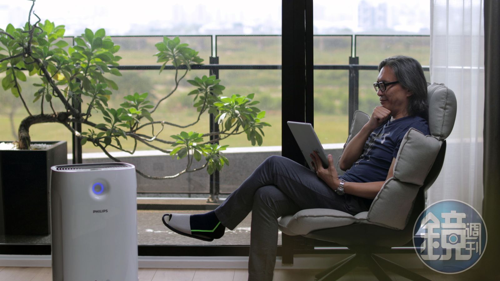 因為自己本身有過敏,兒子從小也過敏,加上必須經常奔波於空汙指數極高的工地,空氣清淨機也是林淵源家中的不可或缺的物件,透過它來改善過敏原和住宅環境上的空氣問題,例如:空氣不流通、廁所有異味、鄰居養寵物的味道…等,「我覺得一個舒適的家,應該是空氣新鮮流通,才能讓人獲得真正的放鬆。」而市售產品中,最符合林淵源使用期待的唯有造型效能兼具的飛利浦智能抗敏空氣清淨機AC2889。