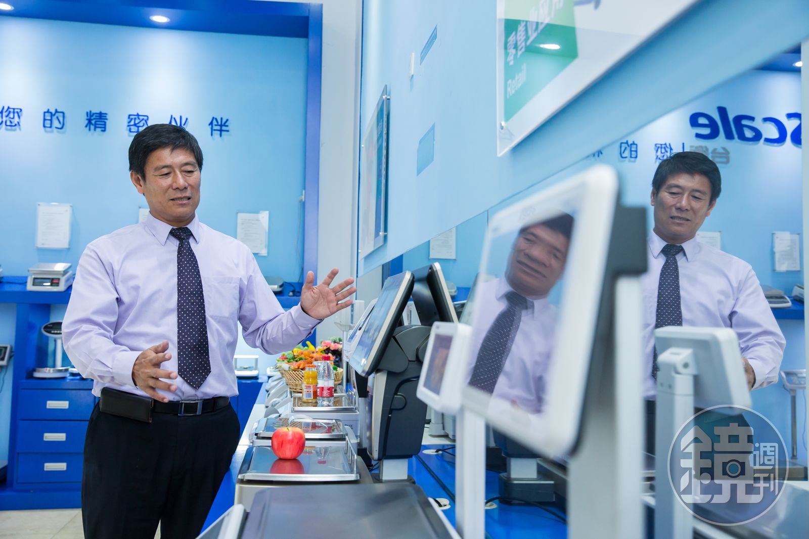 他舉例說:「去年底賣給昆山市政府500台的智慧型衡器,放置公辦市場。與傳統衡器不同的是,智慧型衡器能聯網、結合第3方支付等,菜肉販透過聯網能分析銷量,政府也能掌握昆山每年吃多少豬肉、白菜,形成大數據,從來源控制生產量,預防過剩或不及,而消費者輕鬆用手機掃描收據上的QR Code,食安履歷也會自動躍出頁面。」