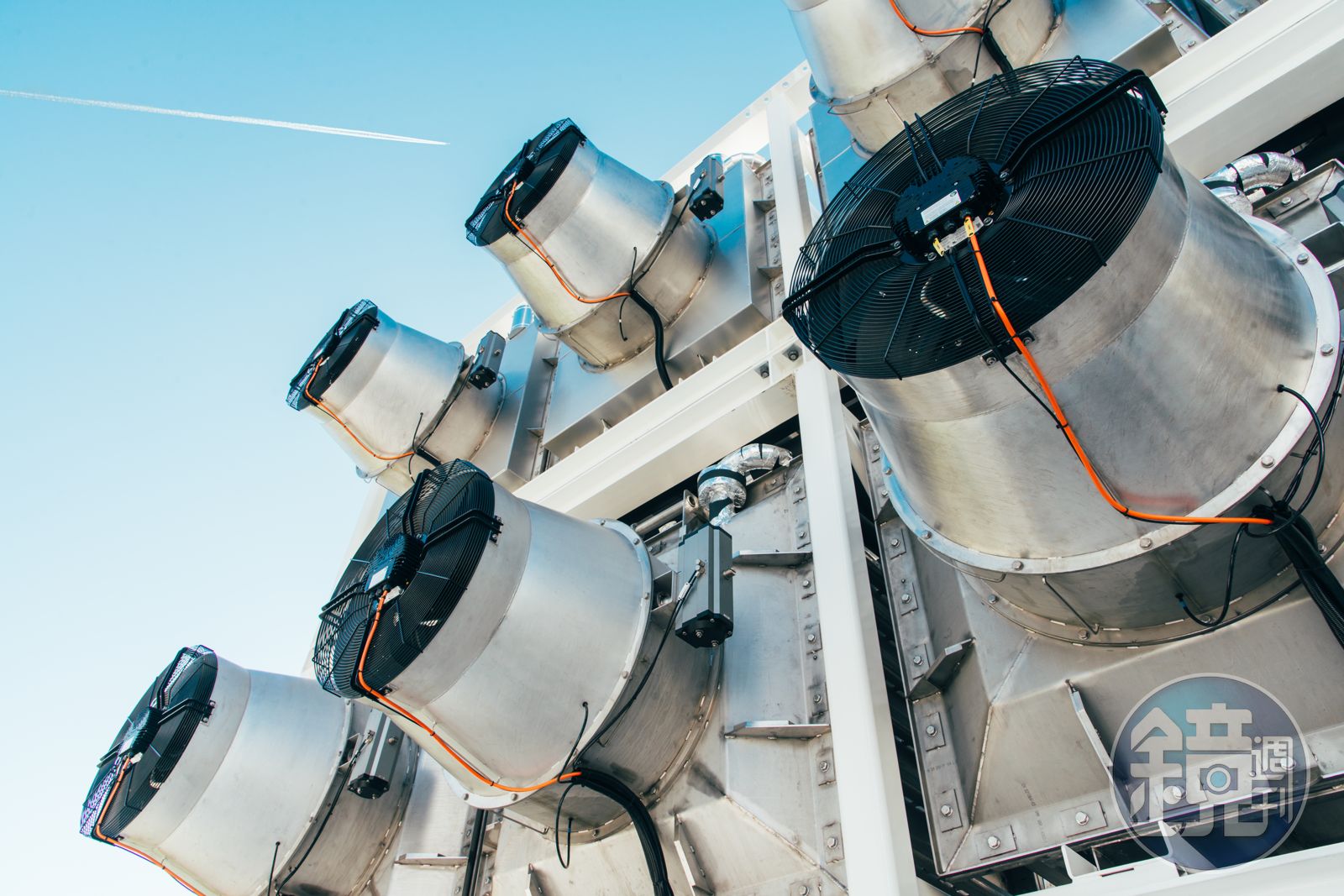直接空氣捕捉技術:直接抽取空氣,進行化學反應,把碳分離出來,大概是最直接了當的捕碳做法了。不過此種方式實用性較差,必須使用大型機具抽取大量空氣來處理,因此發展較為緩慢。