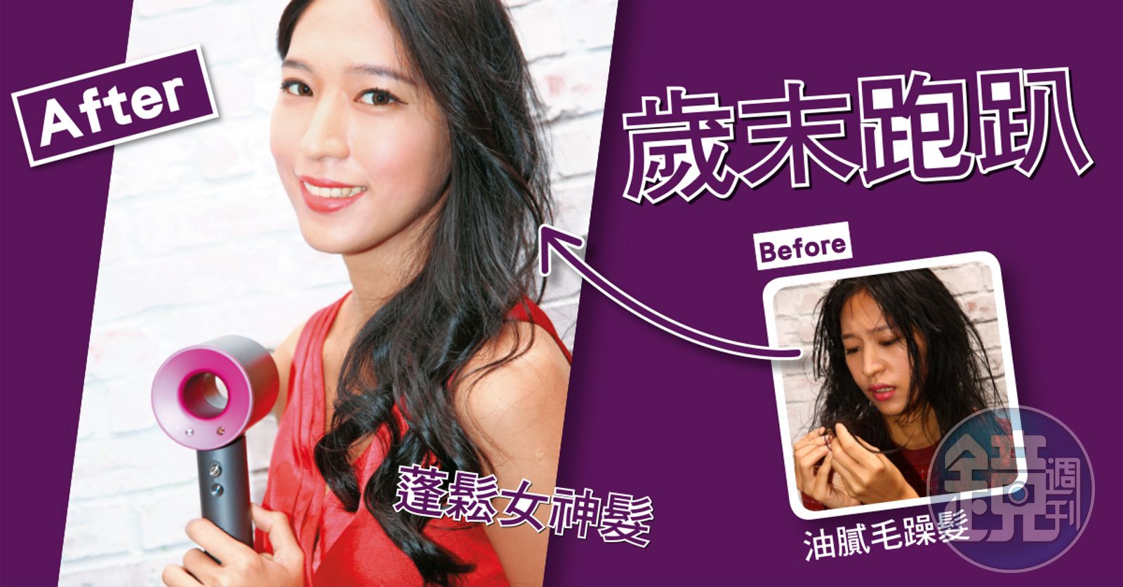 使用擁有溫控護髮效果的Dyson吹風機吹整護髮,快速甩掉頭髮的扁塌感,讓妳帶著蓬鬆光澤好髮質跑場,輕鬆成為派對亮麗焦點。