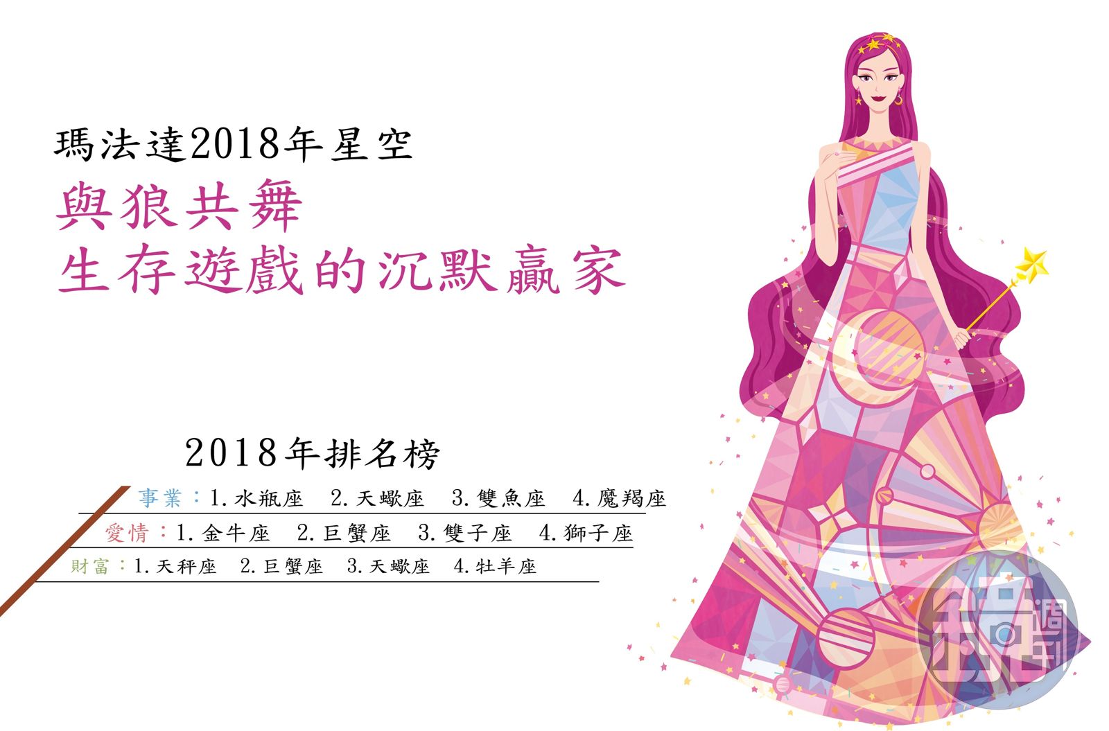 - 財富:1.天秤座 2.巨蟹座 3.天蠍座 4.牡羊座
