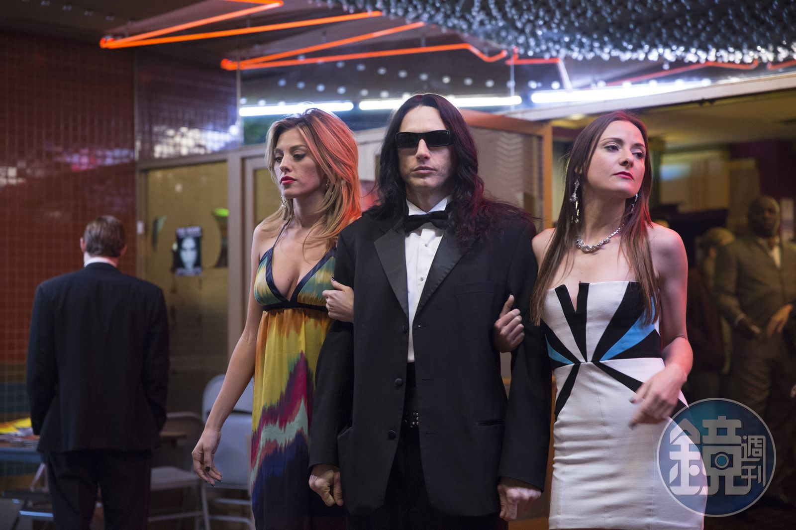 因為這部片的影壇祕辛如此討喜,傳統的好萊塢的生態突然得變得好陳腐無趣;湯米在片中痛罵那些不懂他的人是「壞人」,而整部片中,好萊塢靠邊站的人也都是「反派」,例如大導演賈德‧阿帕托飾演的製片人,無情批評其貌不揚的湯米:「你一百萬年也成不了角。」那以貌取人的好萊塢嘴臉真是賤透了。對比去年此時同樣描寫好萊塢追星夢的《樂來越愛你》的甜美傷感,《大災難家》卻是一種很爽的叛逆。這部片也神奇地touch到影癡:在《房間》首映會上,演員看到自己在銀幕上,臉上滿是驕傲喜悅,不知為何,竟然非常感動;而飾演女主角母親的演員對於電影熱情的一席話,跟《日以作夜》中,楚浮與尚皮耶里奧所說的話,具有同樣的感人力量。故事的重心,也就是葛瑞和湯米的友誼,居然有一點bromance(哥兒們羅曼史)的腐味;葛瑞是湯米世界上唯一的知音;而湯米一直親暱地叫葛瑞「baby face」(小鮮肉),還會吃葛瑞的醋。兩人的互動,非常……甜蜜。《房間》這樣一個慘不忍睹的電影文本,怎麼會從背叛愛情故事,變成喜劇/靠片,又被詹姆斯法蘭科改造成BL+《日以作夜》+勵志片,整個過程我到現在還搞不清楚。