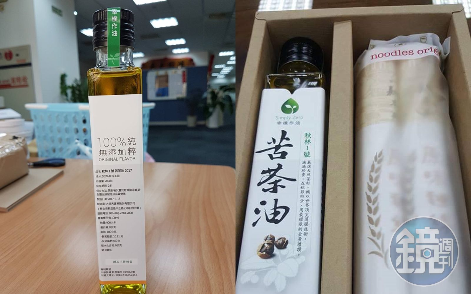 油品的保存期限上,寫著去年9月生產,業者也製作食用油禮盒。(民眾提供)