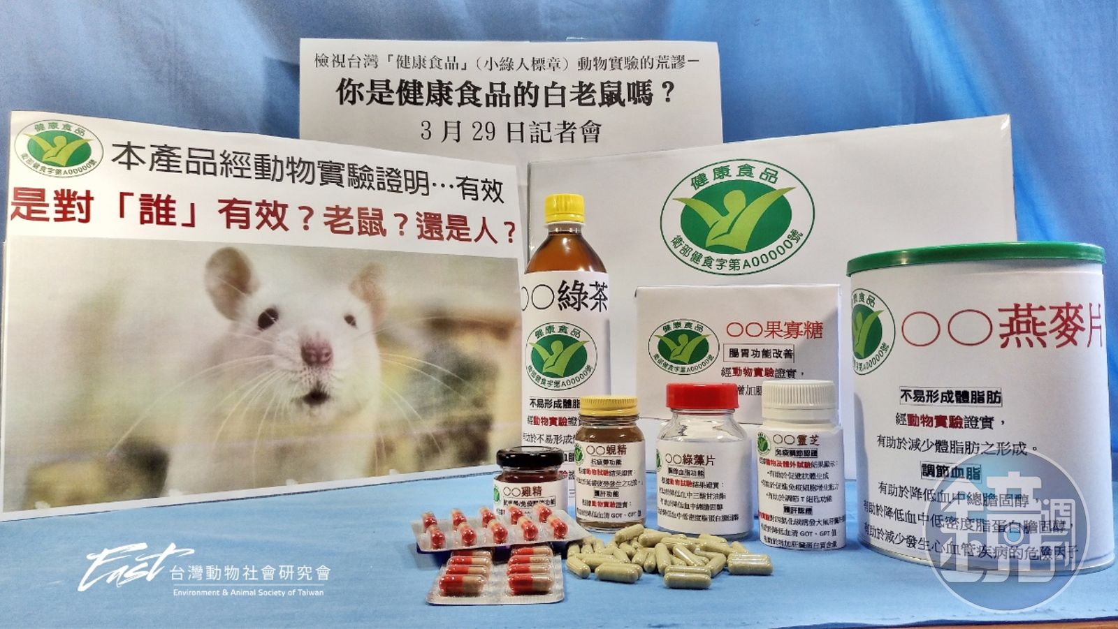 台灣動物社會研究會副執行長陳玉敏表示,近7成消費者在過去1年曾購買保健或健康食品,大多數消費者又喜愛購買通過小綠人標章的產品,目前可合法販售的產品有298個,但大眾不知道的是,這些產品大多沒有經過人體試驗認證。