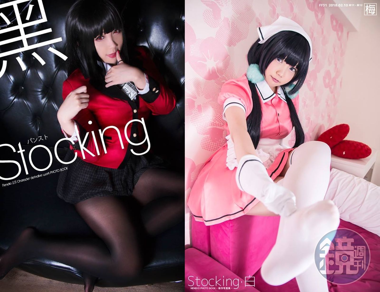 在眾多二次創作的同人寫真書中,以去年發行的一本以黑/白絲襪為主題的「足控」寫真書尤其有趣,粉絲反應也特別熱烈,本以為「足控本」是與粉絲互動後的產物,「不是喔,是我從 Twitter 找到的題材。」Neneko 解釋道。