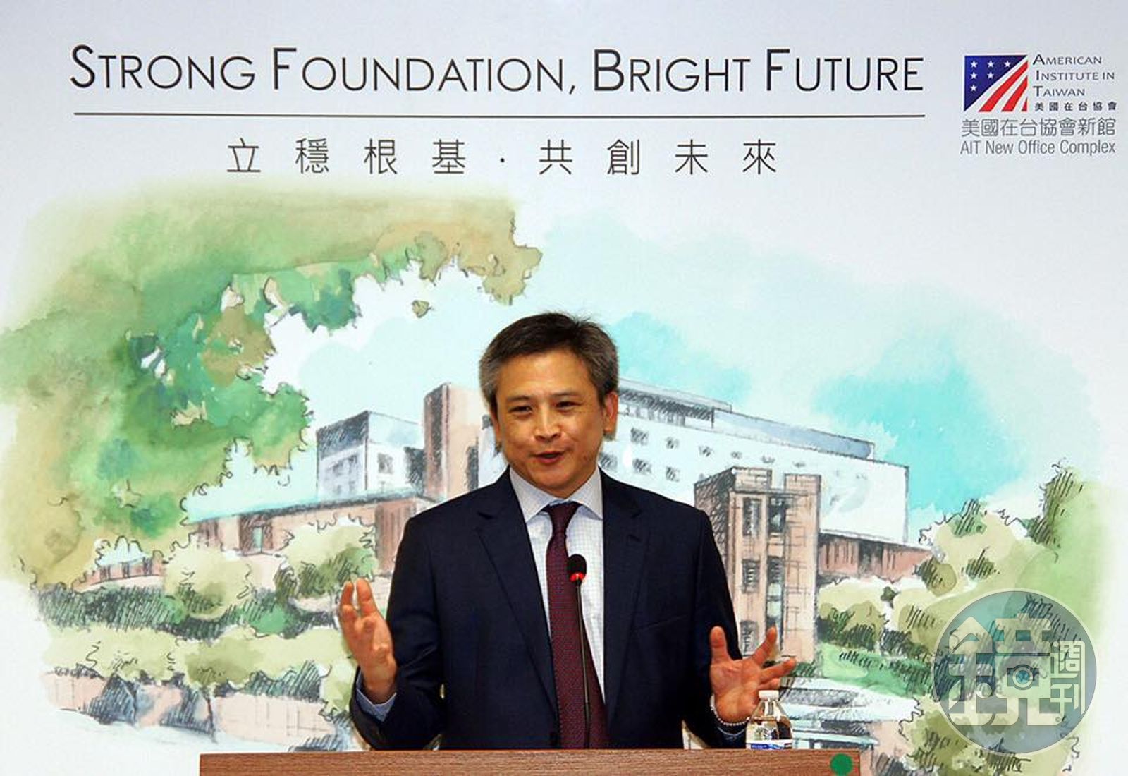 美國在台協會處長梅健華介紹即將落成啟用的台北辦事處新館。