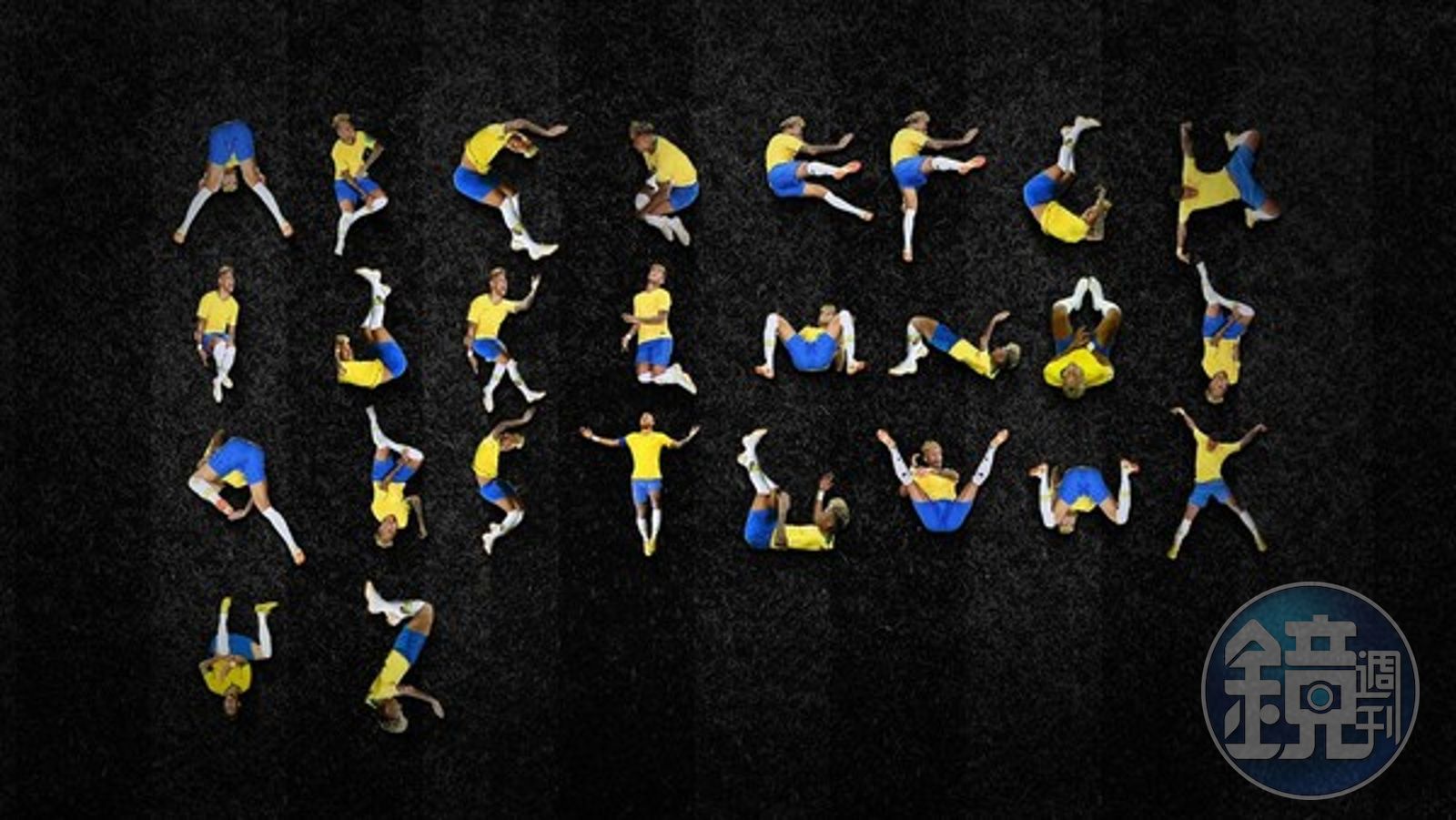 明星球員內馬爾因為「假摔事件」引起熱議,巴西設計師雅各布(Luciano Jacob)將內馬爾翻滾動作化為26個英文字母,並命名為「Ney type(圖片來源/Luciano Jacob臉書)發布時間:2018.07.13 15:02 臺北時間