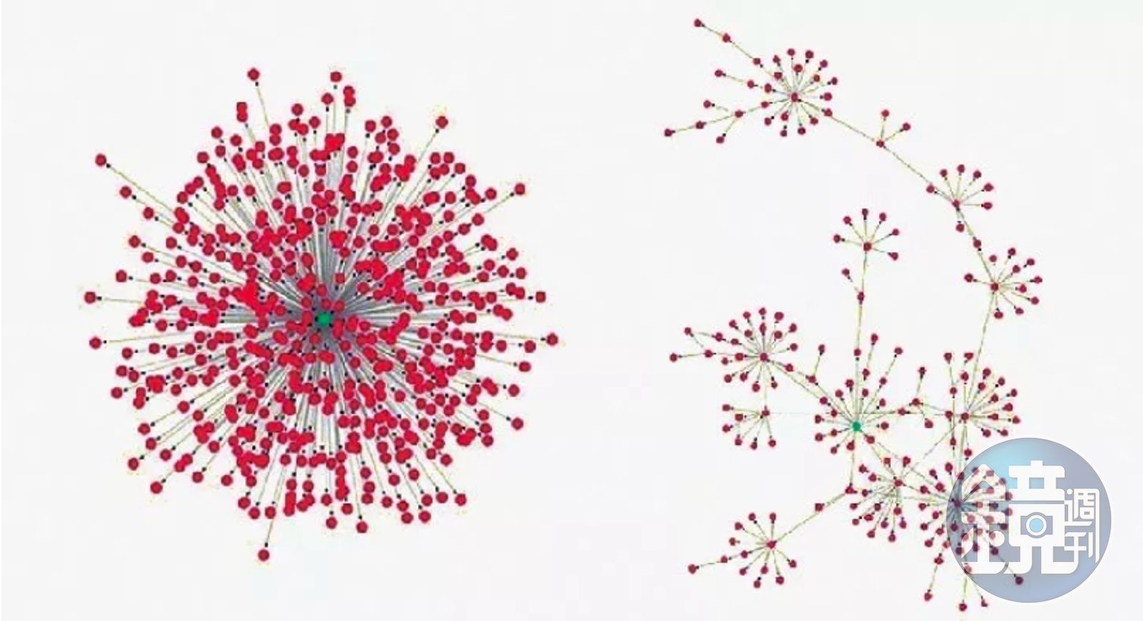 同樣,來自北京航空航太大學的網路專家李大慶教授也未把內容作為鑑偽程式的重心,而是把新聞的傳播形式當作主要評判依據。他收集了微博上1,700條假新聞、500條真新聞,以及推特上真假新聞各30條,分析了它們的擴散特徵後發現,真新聞的傳播主要是靠用戶從單個可靠訊息源的直接分享,而假新聞的傳播則主要依託用戶間的分享。