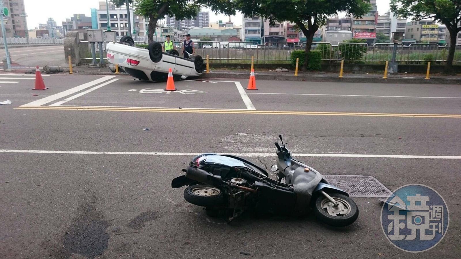 警方指出,機車騎士王男(43歲,毒品、詐欺案通緝中)日前騎乘機車在台中市東區旱溪東路與旱溪街口,與駕駛自小客車的陳男(46歲、毒品前科)相撞,陳男還因閃避而翻車,但2人可能「氣味相投」,竟然一起逃離現場,留下翻覆的車輛與滿地破碎的機車零件。