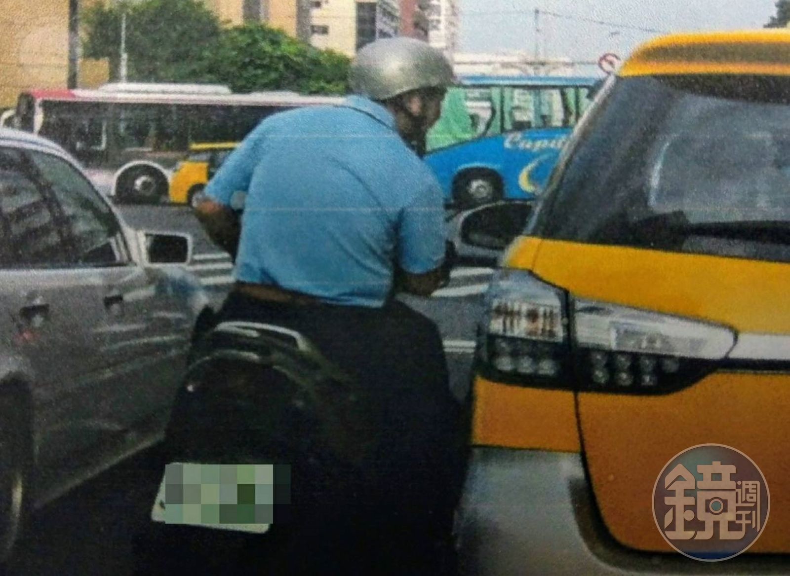 洪男四處敲車窗佯稱機車沒油、又沒帶錢包,希望能借錢加油,沒想到早被警方鎖定。(警方提供)