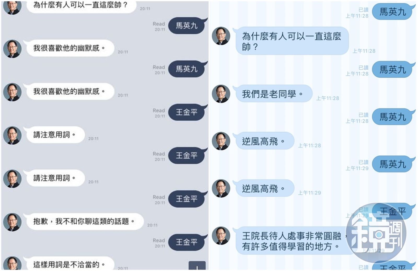 談到王金平,丁守中的LINE聊天機器人改口「王院長處事圓融」。(左圖取自PTT、右圖讀者提供)發布時間:2018.08.17 11:12 臺北時間