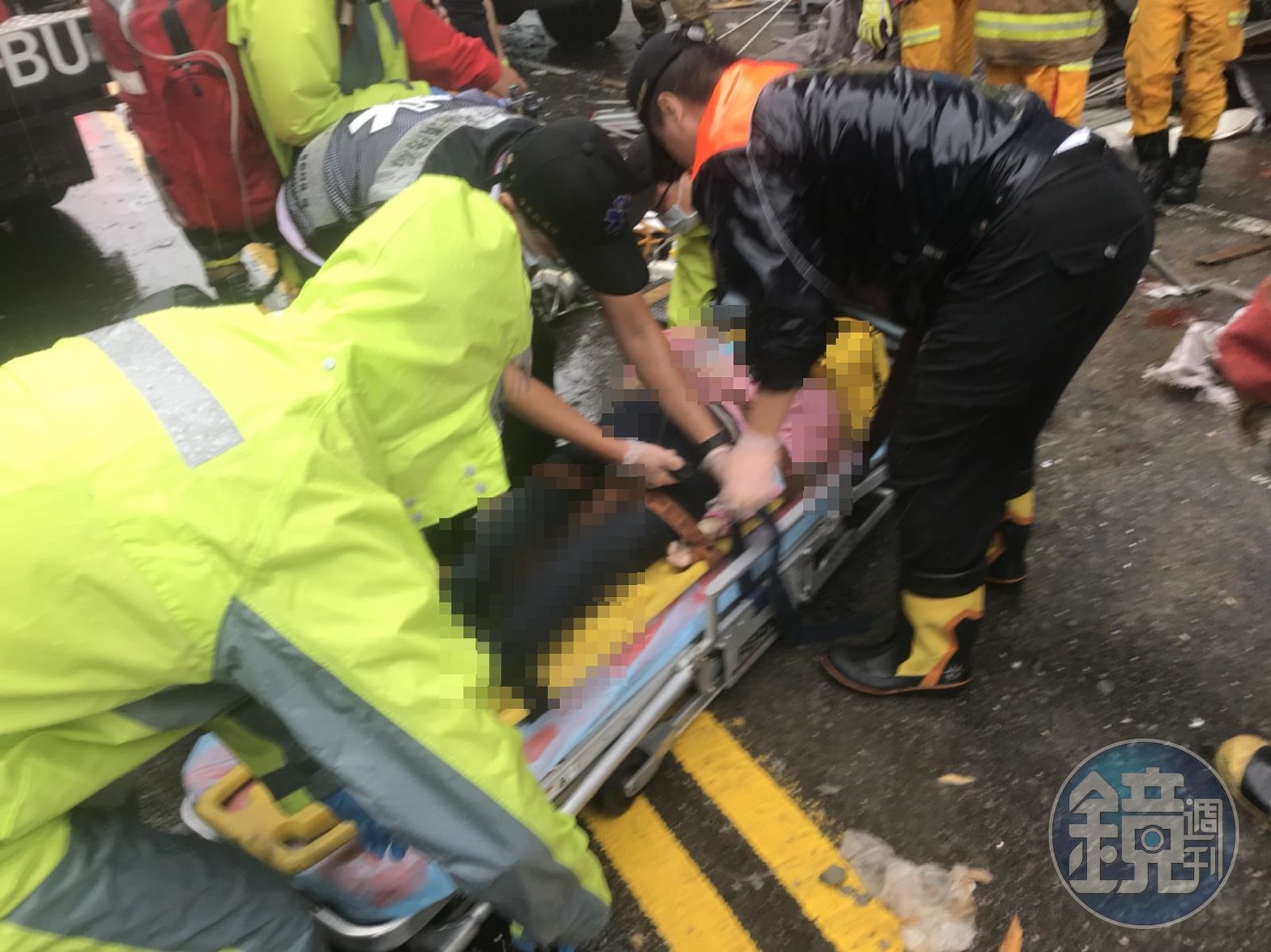 警消調查,3名受困者2女1男,約30歲男子與約50歲女子到院前心肺功能停止,另1名約30歲女子無生命跡象。目前死者身分有待確認。警消調查,這棟大樓工地現場一片凌亂,鷹架散落一地,高空還有許多搖搖欲墜的鷹架,情況相當驚險。