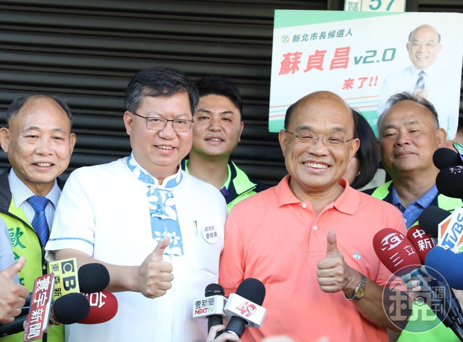 另外,鄭文燦被媒體問到是「北北桃最強母雞」時,立刻指著左邊的蘇貞昌說:「母雞是我的左手邊。」蘇貞昌則說,鄭文燦4年下來深獲好評,大家都可以看出真的是會做事的鄭文燦讓桃園市進步非常快。