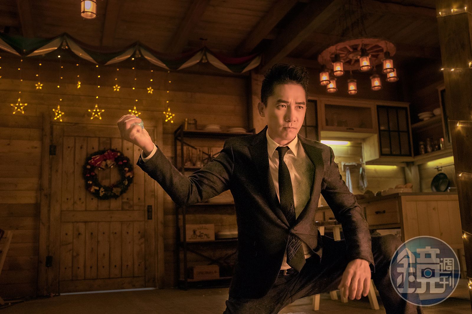 已貴為影帝男神,但許多動作場面,梁朝偉依然親自上陣,「因為一直都有運動的習慣,所以拍攝動作場面時都會很興奮、很High。」而其中一場與唐嫣在天台進行跑酷場面也是險象環生,他接連挑戰高難度動作,一下花式旋轉接著又要後空翻,但他透露其實一整排純白的天台建築看起來很美,但頗有高度,「一個不小心就會翻下去了。」拍攝時,讓身邊的工作人員也都捏了一把冷汗。