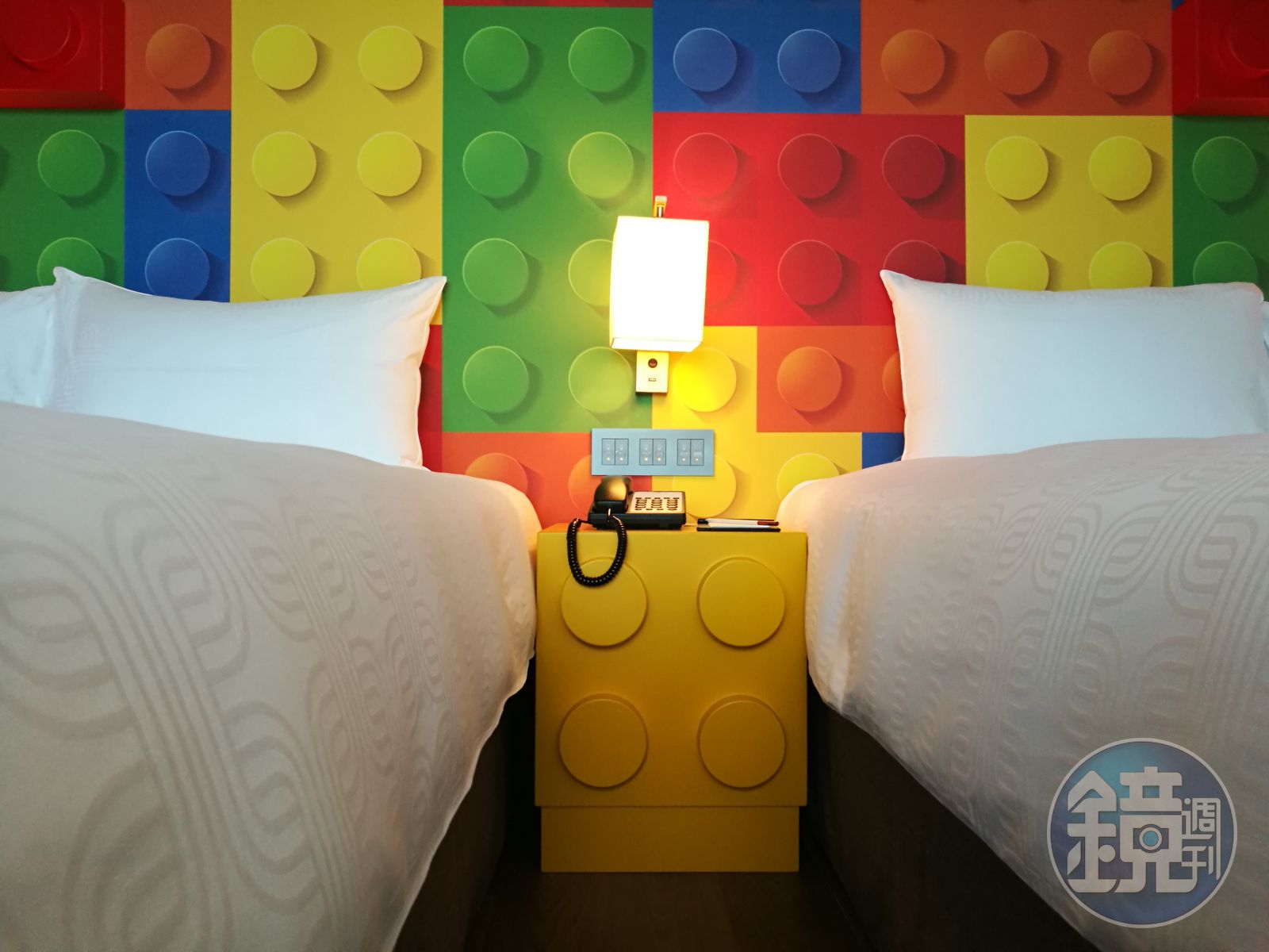 看中宜蘭是不少親子客的旅遊首選,共有173間溫泉客房的「兆品酒店礁溪」,就有高達87間為家庭房,其中還特別與宜蘭「積木博物館」合作,打造出一整層的「泊麗客房Brick Room」主題樓層,從電梯一打開門開始,整面多彩積木牆立刻吸引小孩目光,連門房號碼也是積木拼成,更遑論房內牆面的立體積木掛畫,以積木堆疊出諾亞方舟故事中的動物。
