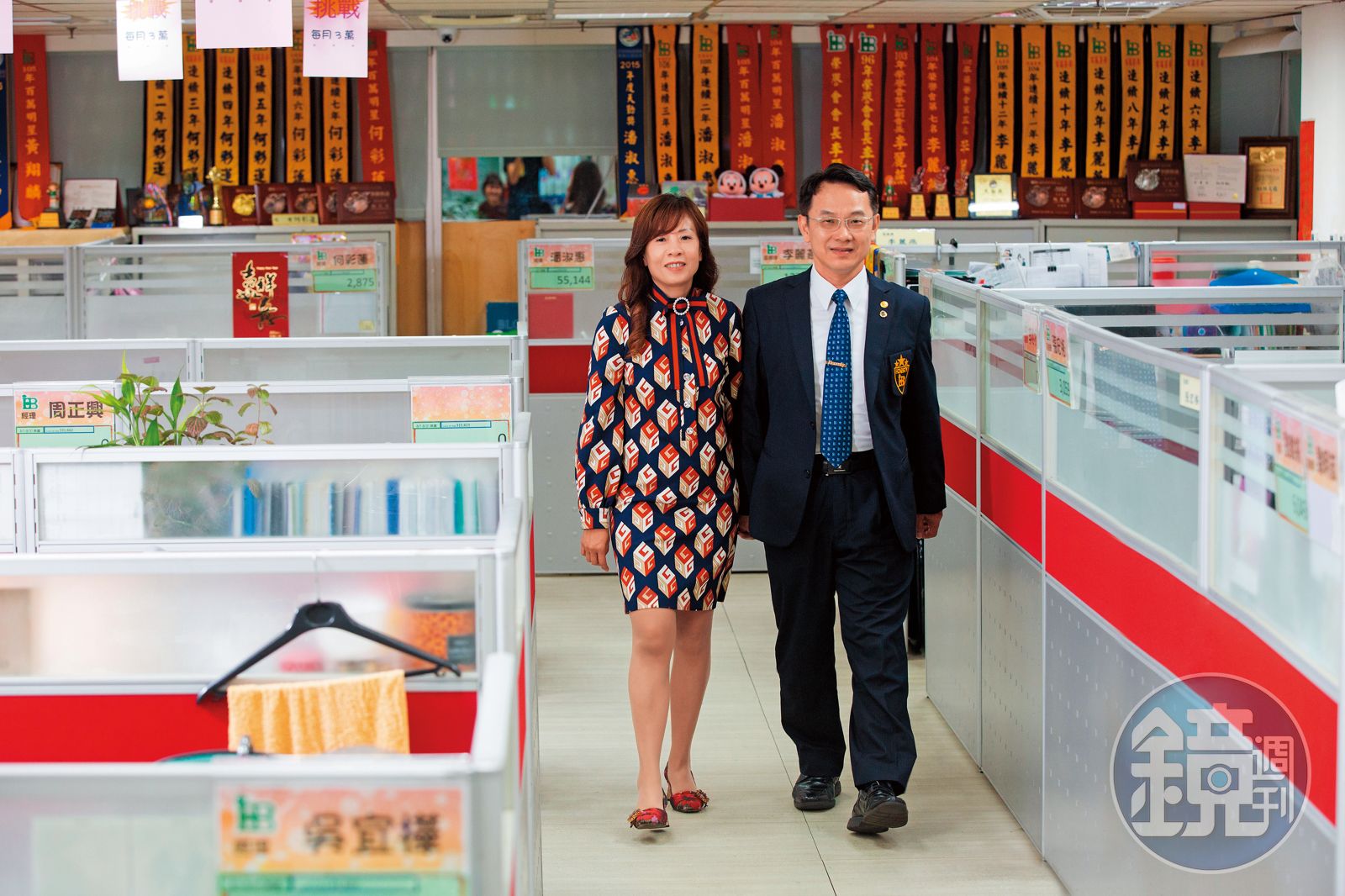 相較於太太擁有典型業務員的活潑健談,王文全內斂許多,初見面不會主動開啟話題,致詞也是長輩級的正經。夫妻倆是彼此的初戀也是創業夥伴,合力帶領大誠保經將去年新契約保費衝到60億元,保單續繳率97%,登錄人力為3,461人,規模從保經界前5大成為第2大,僅次公勝保經,簽約保險公司達32家,為業界最多。