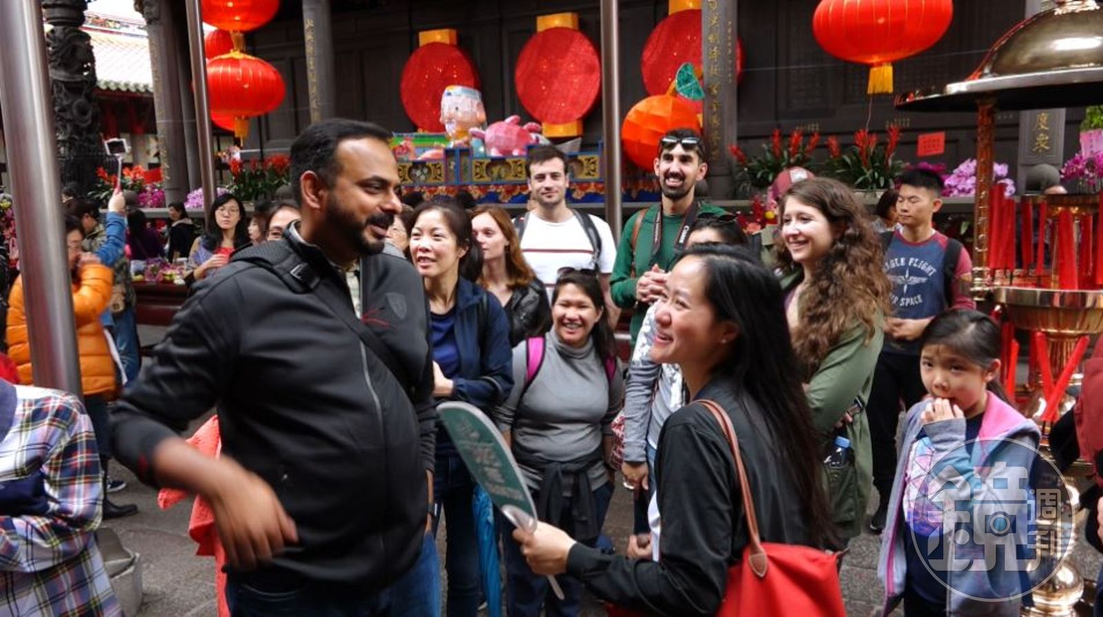 在人聲鼎沸的龍山寺,香客的虔誠、寺內的神祉、膜拜的方法,擲筊問神明,種種新鮮的文化體驗,都讓遊客目不轉睛。
