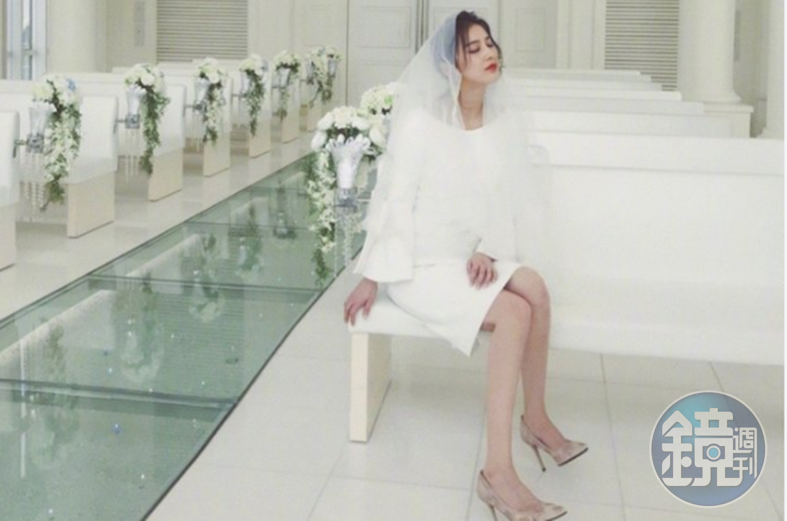 黃聖依身穿潔白的婚紗,配上薄薄的頭紗,仙氣十足。(翻攝黃聖依微博)