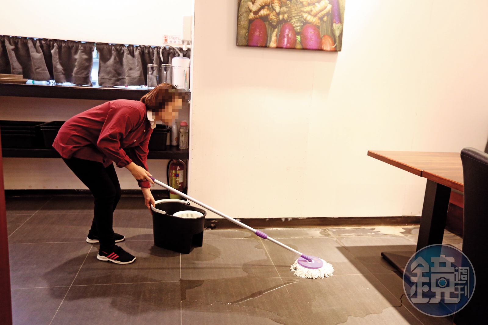這處黃金店面與信義商圈只有一站之隔,店門外就是虎林街黃昏市場,周邊還有大型知名超市及多間國中、小學,生活機能佳;但踏入得利來福的Daily Life健康養生餐廳,卻看見大片沿著牆壁縫隙滲出的積水。楊姓執行長痛批,「教育部留下的爛攤子,我們每10分鐘就要拖一次地,每天用餐尖峰時間一過,地上就是一大灘水。」