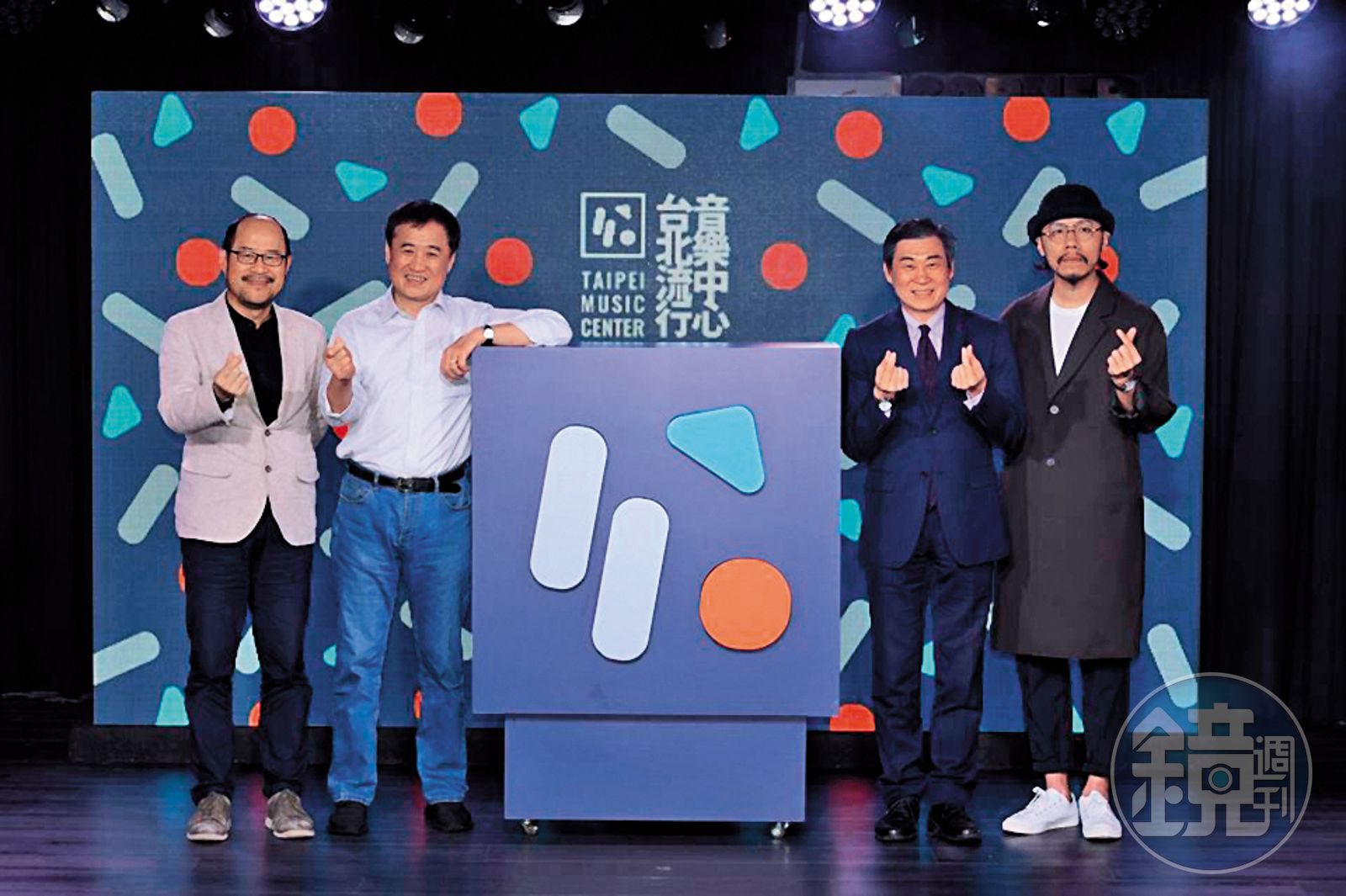 方序中(右起)、文化部影視及流行音樂發展司副司長王志錚、前北市副市長陳景峻、前北市文化局長鍾永豐,出席北流主視覺標誌發佈會。(翻攝自北流臉書)發布時間:2019.01.30 06:25 臺北時間