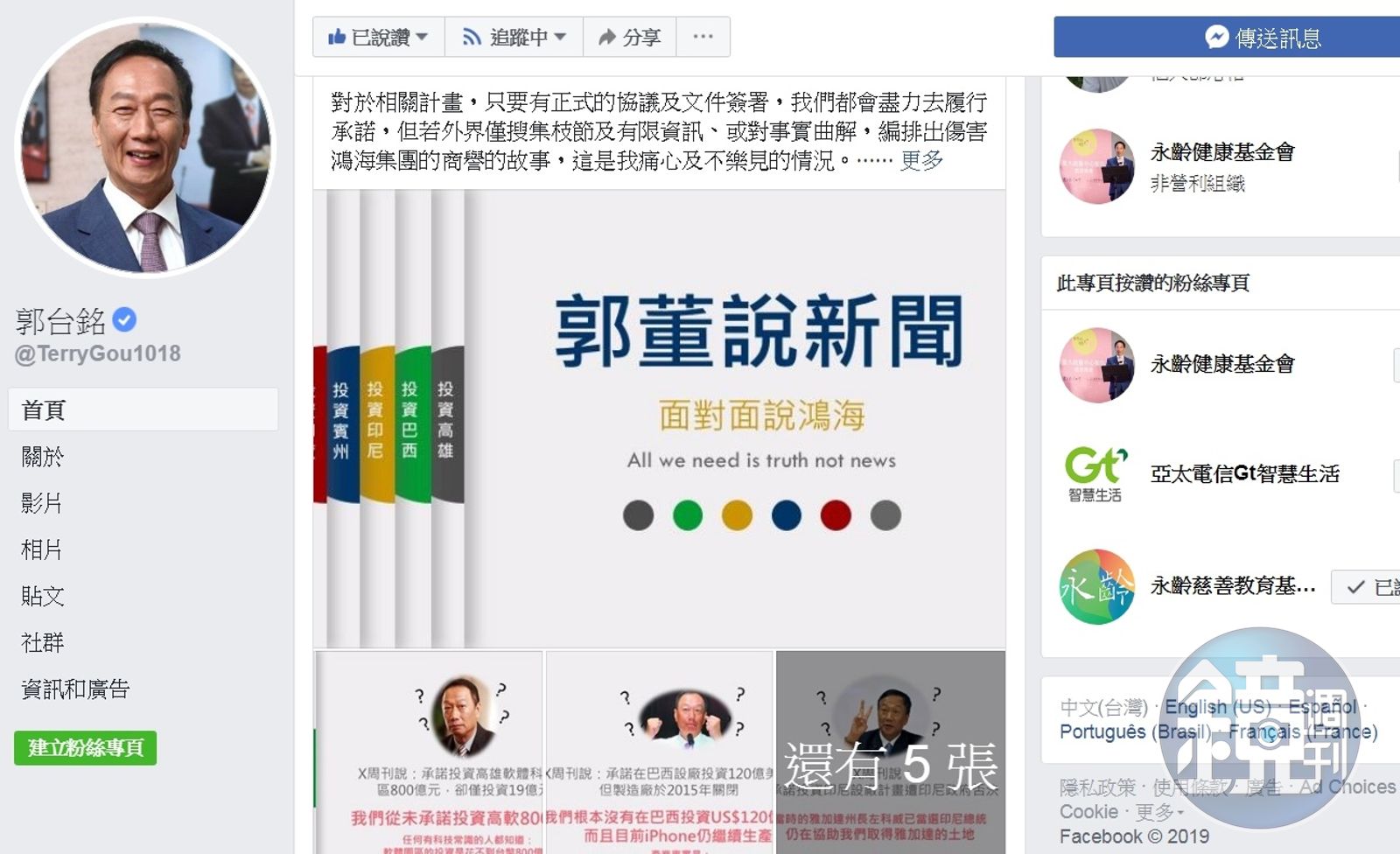 PO文搭配7張圖文並茂的解說內容,希望網友能夠迅速了解,藉此一一駁斥媒體對於高雄、巴西、印尼、賓州、印度等投資案的報導內容。