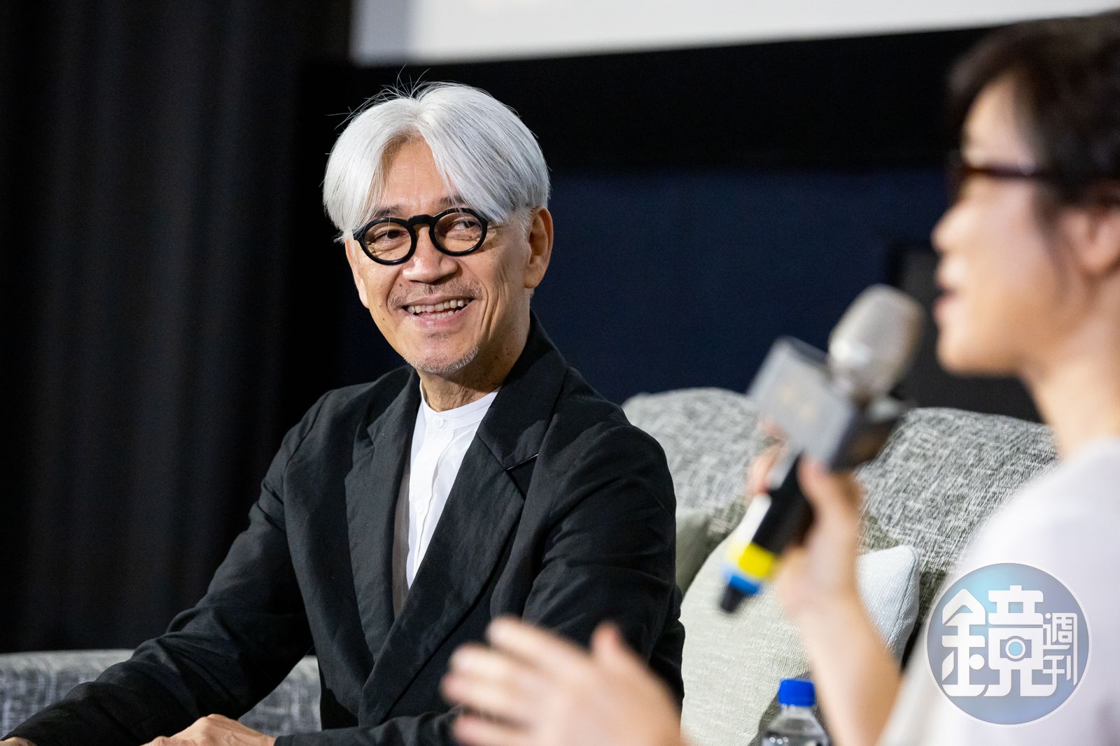 《坂本龍一:終章》特映會的映後講座,由音樂創作人雷光夏主持,由坂本龍一親自回答台灣粉絲對他的提問,簡直太夢幻。睽違20餘年再訪台灣的坂本龍一,出場不但先以中文親切地向現場觀眾打招呼,還表示看過不少台灣電影。