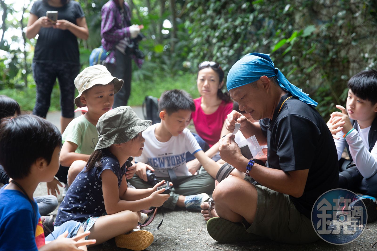但他也說,帶的親子團,其實多半在孩子上國中後,就會中斷。不見得是因為失去興趣,而是學業上的要求超前,排擠了其他的活動機會,「但參加真的會有差吔。家長會說,他們在家裡看到蟑螂都會把牠趕出去,如果一般人,一定是打死,可是家長說小孩子會阻止家長把蟑螂打死,那其實就是一種生命教育。」說著,他就指著牆上說:「你看那邊不是也有一群螞蟻在排隊?」