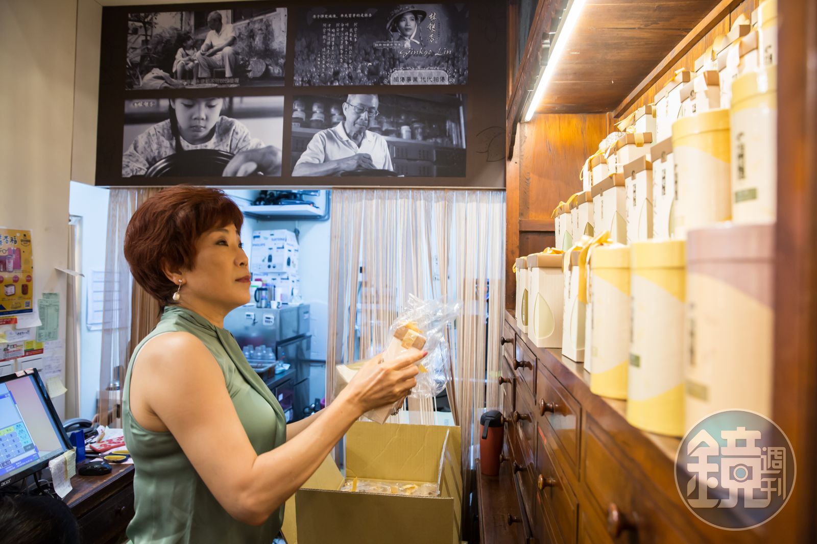「我媽看到那麼多人來買杏仁粉,就說服我阿公請歐巴桑來磨,我記得,最早本來是我阿公一個人用那種石頭小缽在磨,後來換成大缽,然後就變成有一排歐巴桑坐在店裡一起磨。」林銀杏說,媽媽一個字都不認識,卻懂得做生意要量化的道理。「我阿公有理念,但會做生意的是我媽,後來還做到批發,杏仁粉的生意比賣中藥好!」1975年正式註冊為「上真杏仁粉」。