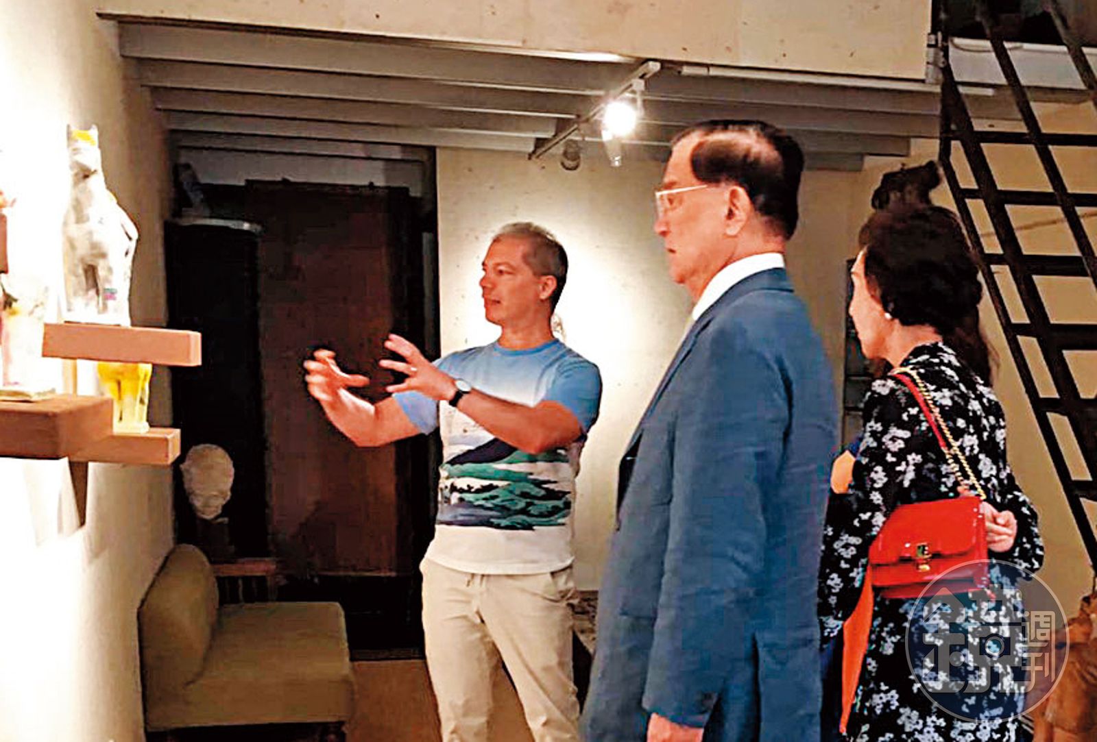 雷明思在永康街辦個展,連戰夫婦到場參觀時,女婿還親自解說。(翻攝臉書)發布時間:2019.10.09 05:58 臺北時間