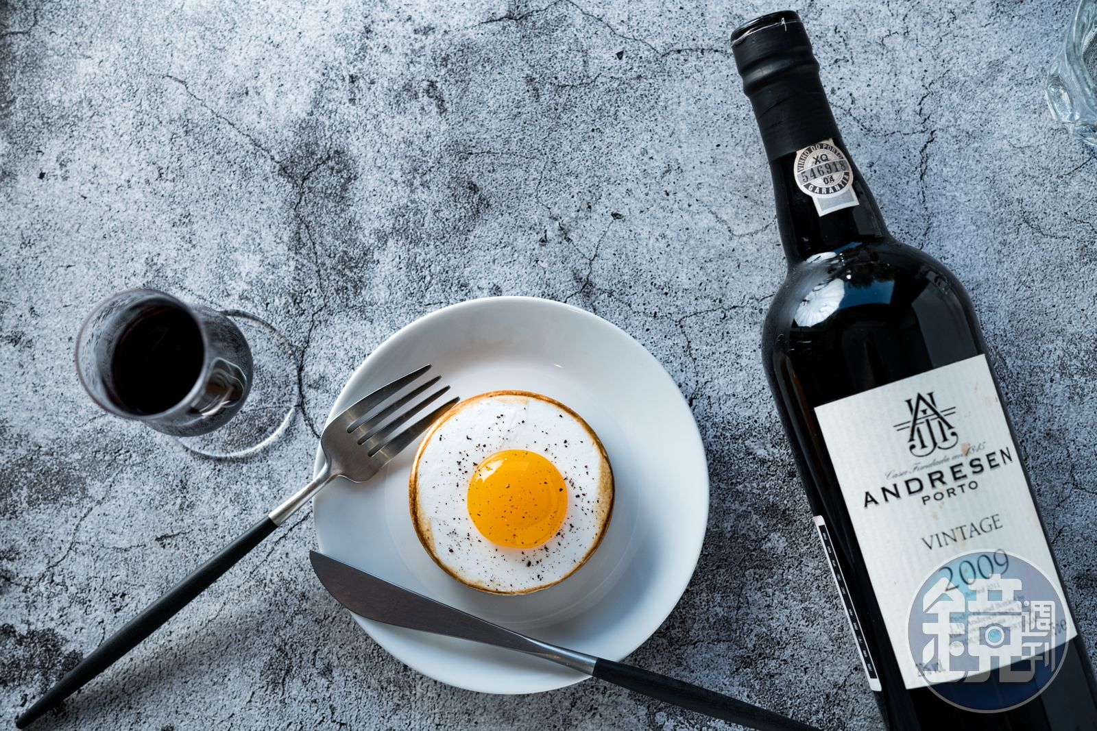 長得像荷包蛋的招牌甜點「蛋塔」,她選擇與「Porto Anderson Vintage 2009」陳年波特酒搭配,「像這種帶酸味的巧克力甜點適合風味深沈的波特酒或是風乾葡萄釀造的Amarone紅酒。」而清爽不膩的「那個蒙布朗」,除了可與洋梨果醬香氣的Chenin blanc白酒搭配,與「Condrieu Tandem 2015」這支過木桶、喝起來如奶油香滑的厚實白酒,竟也能相輔相成。有侍酒師在側,葡萄酒與甜點混搭出非典型新滋味。