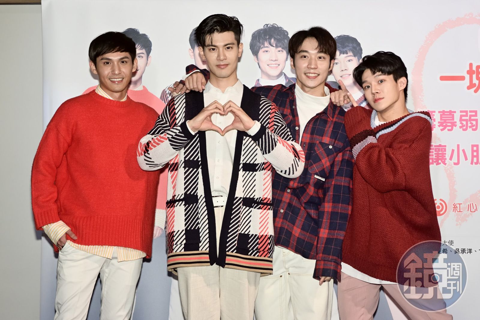 卞慶華、陳廷軒、吳承洋、陸正希,今(6)出席紅心字會「Hi-Love 一塊,發現愛」公益活動。(紅心字會提供)發布時間:2020.01.06 16:38 臺北時間