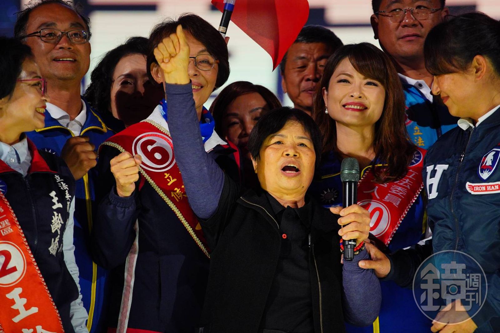 陳樹菊日前公開挺韓,卻遭到網路霸凌,今天現身選前之夜顯得有些緊張。她說,「我們要選一個能夠為我們做事的領導人,要選出一位能為台灣這塊土地做事情的人,國家才會興旺」。